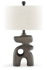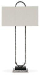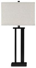 Accent table. Constructed of paper wrapped engineered wood in gray washed finish and black finished metal. Nesting. Set of 2.