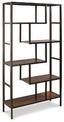 Accent table. Constructed of solid wood in dark brown finish and gunmetal finished metal. Fixed center shelf. Clean with a soft, dry cloth.