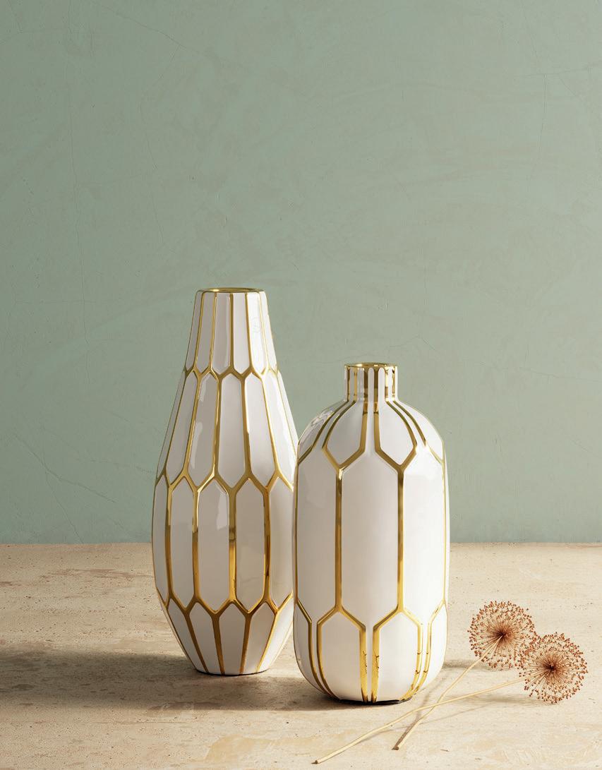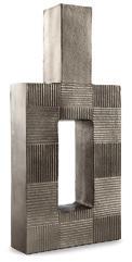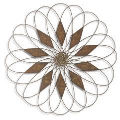 Wall sculpture. Made of metal with antique gold finish. Geometric design. I-ring bracket for hanging. Hangs four ways. Due to the finishing process of this product, some variations may occur.