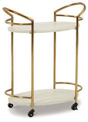 Accent table. Constructed of engineered wood and bone inlay in cream and black finish and black finished metal. Due to the use of natural materials, some variations may occur. Coordinates with A4000531 accent cabinet.