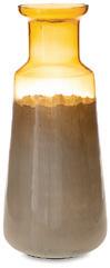 Accent table. Constructed of sand casted aluminum in antique brass finish, white marble and clear glass. 1 shelf.