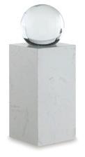 Accent table. Constructed of sand casted aluminum in antique black finish, white marble and clear glass. 1 shelf.