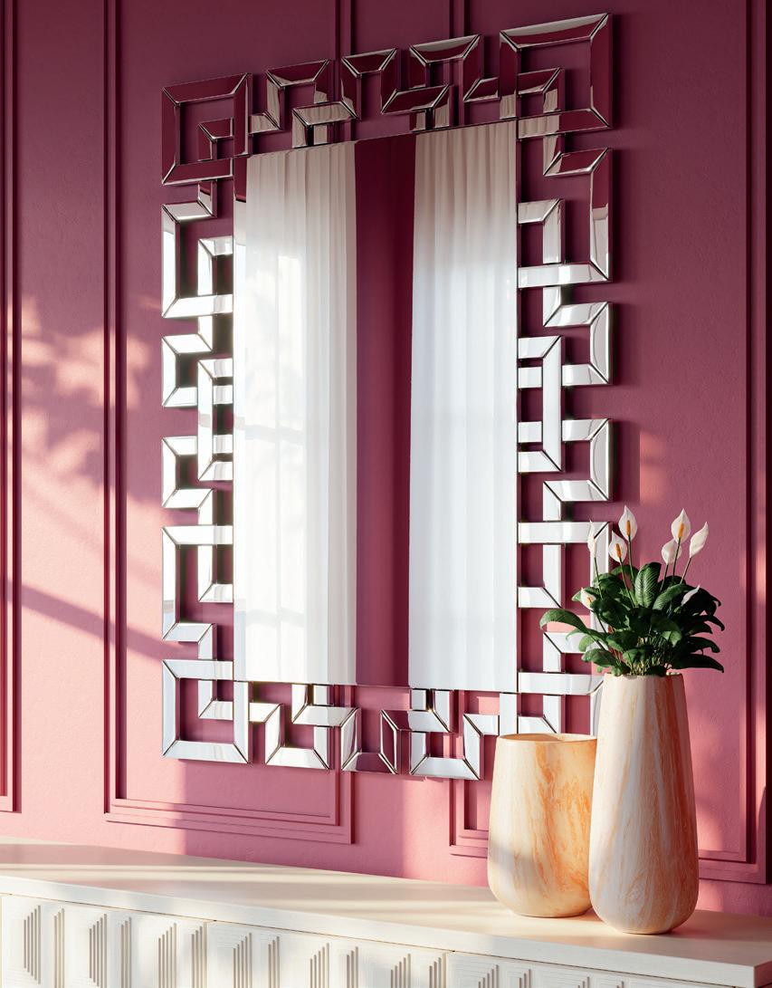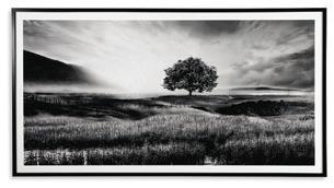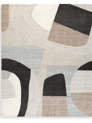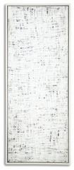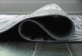 Wall sculpture. Made with woven fabric. Wood frame with black finish. Geometric design. D-ring bracket for hanging. Vertical and horizontal hanging.