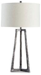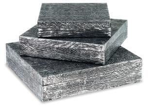 Accent table set. Constructed of solid wood and engineered wood in metallic gray finish. Nesting. Set of 3.