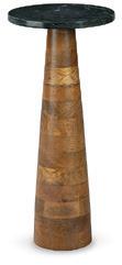 Accent cocktail table. Constructed of solid and engineered wood in wire brushed warm brown finish. Black marble top. Fluted base design. Due to the use of natural materials, some variations may occur. Coordinates with A4000602 and A4000603.