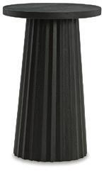 Accent table. Constructed of solid wood in wire brushed black finish. Fluted base design. Coordinates with A4000601 and A4000602.