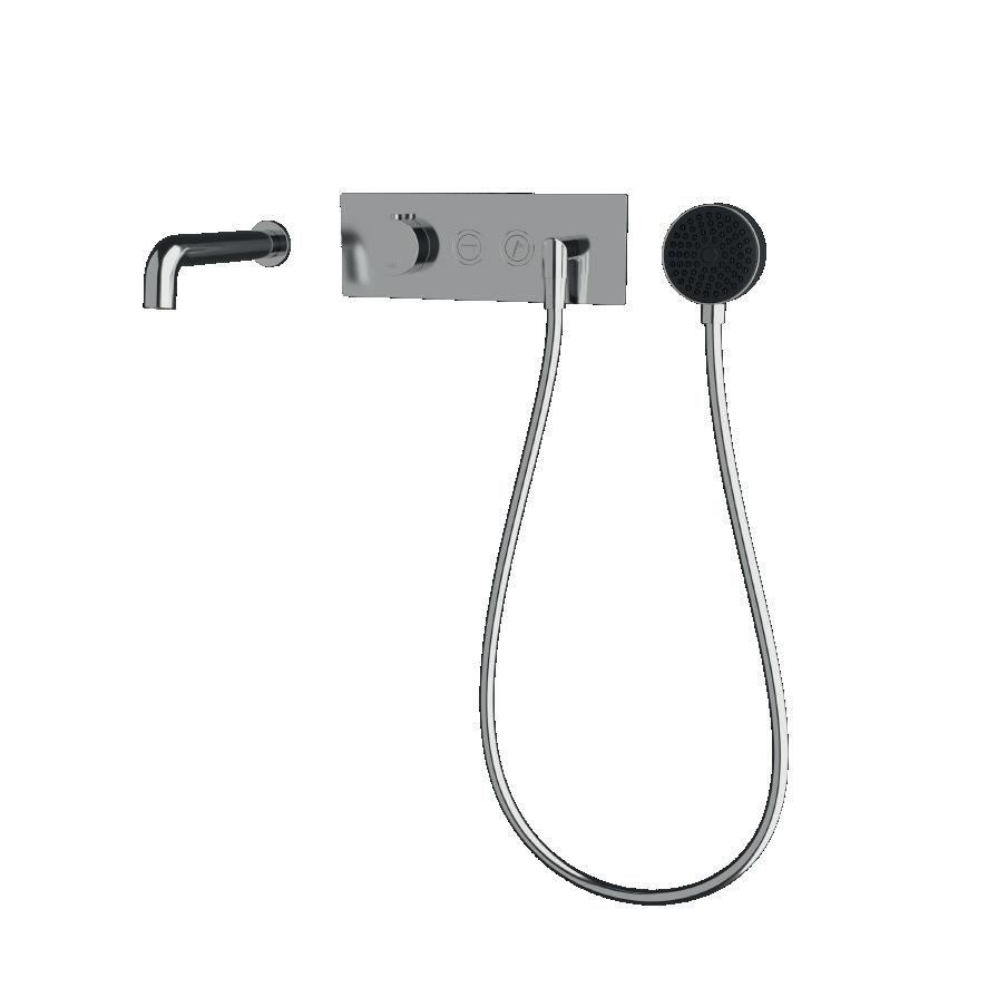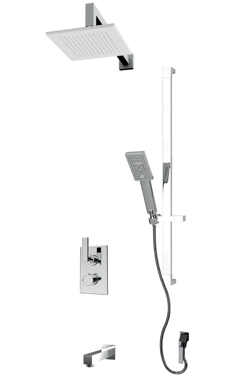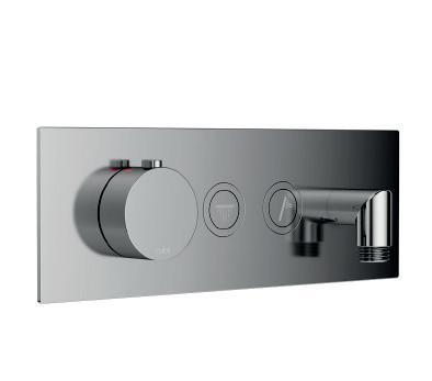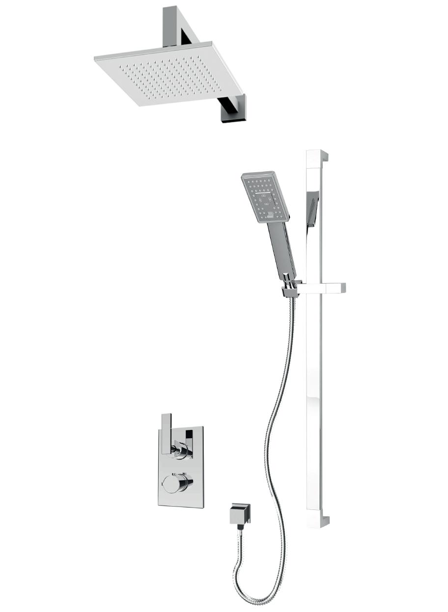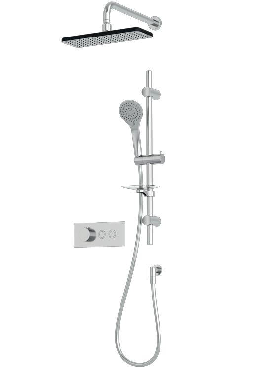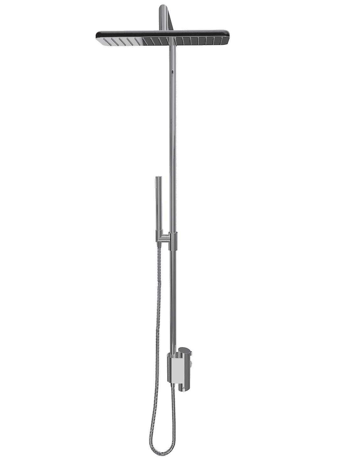 Thermostatic shower column with sliding hand shower and rectangular shower head