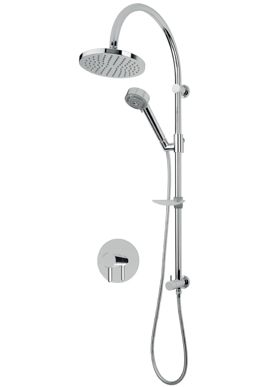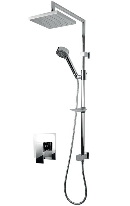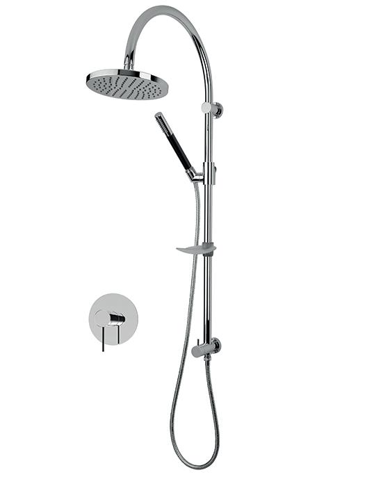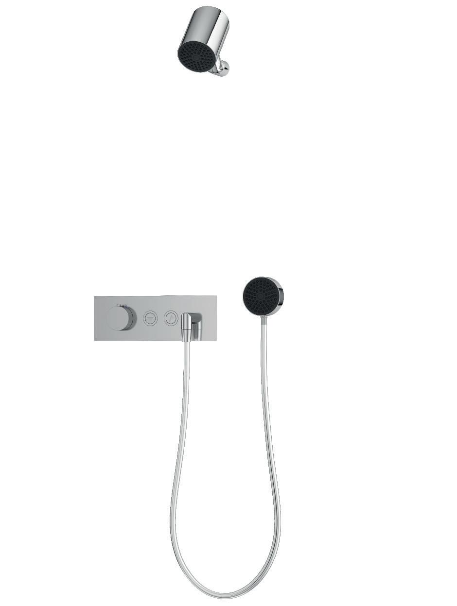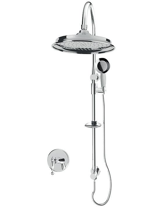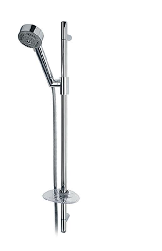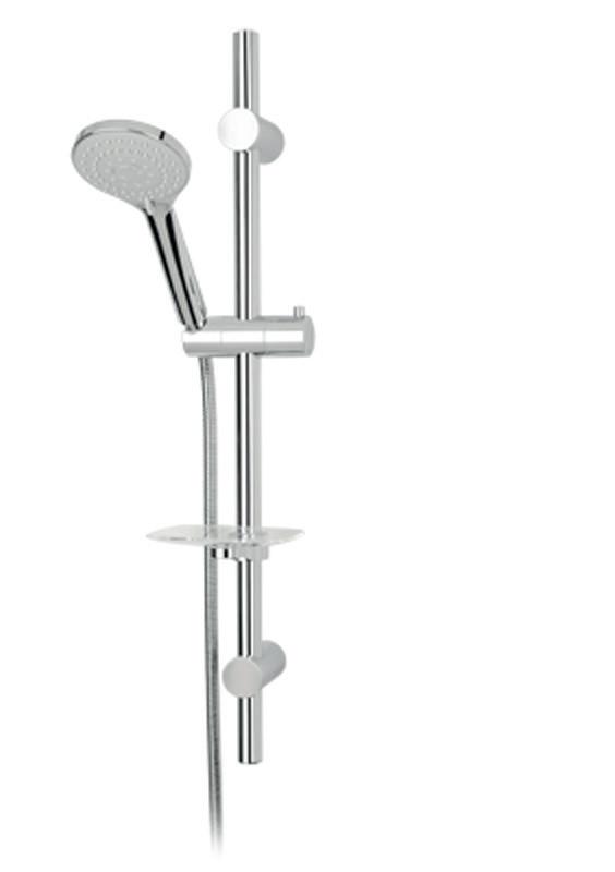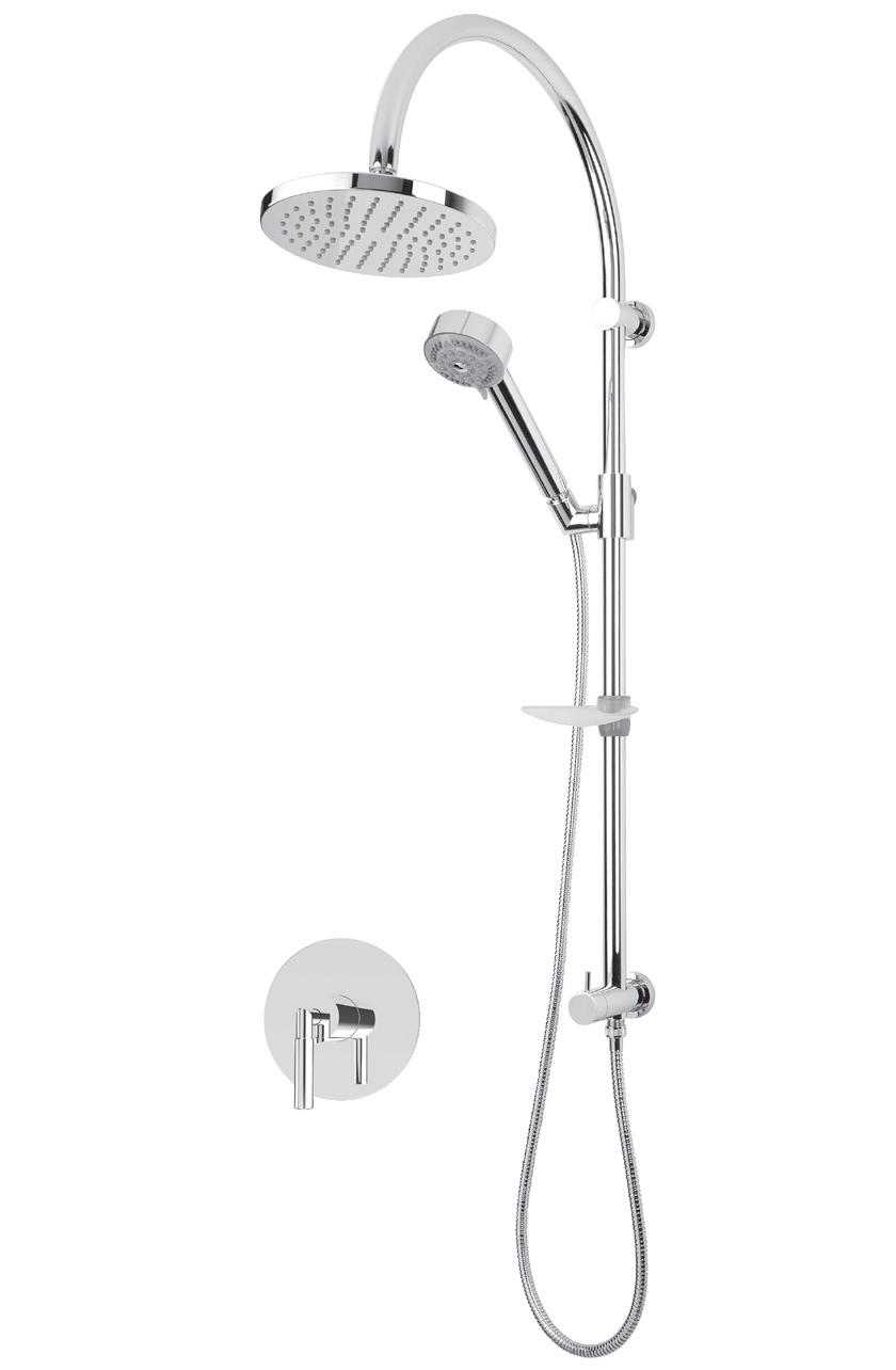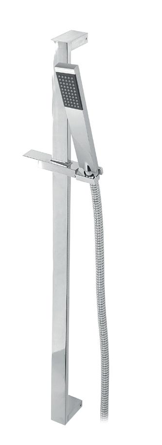 · Colonne de douche avec douchette coulissante, porte-savon inclus Shower column with sliding hand shower, soap holder included Débit: douchette: 8 L/min - 2,2 gpm, tête de douche: 8 L/min - 2,2 gpm