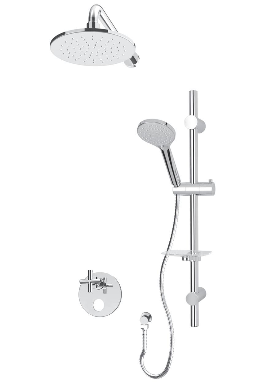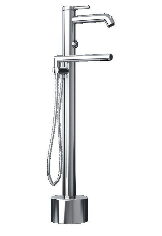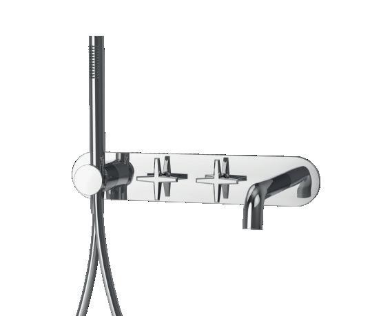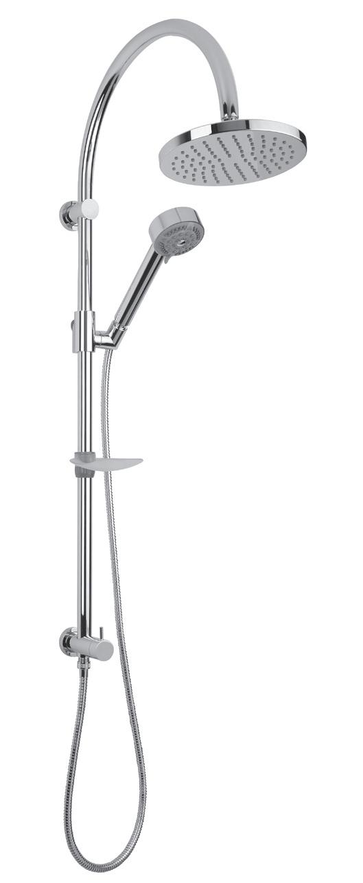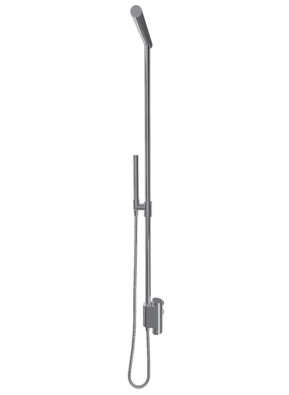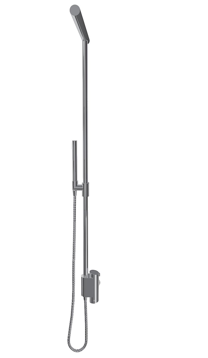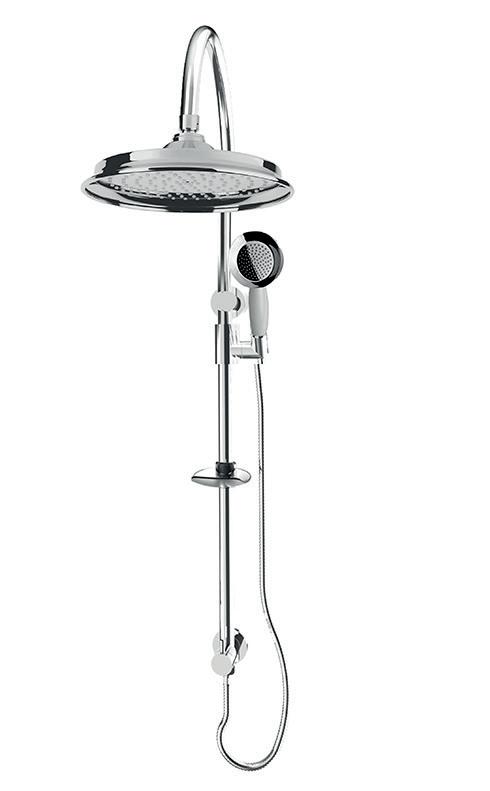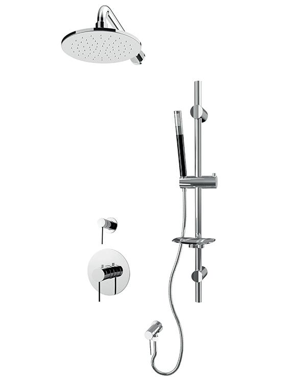 · Colonne de douche avec douchette coulissante, porte-savon inclus Shower column with sliding hand shower, soap holder included Débit: douchette: 8 L/min - 2,2 gpm, tête de douche: 8 L/min - 2,2 gpm