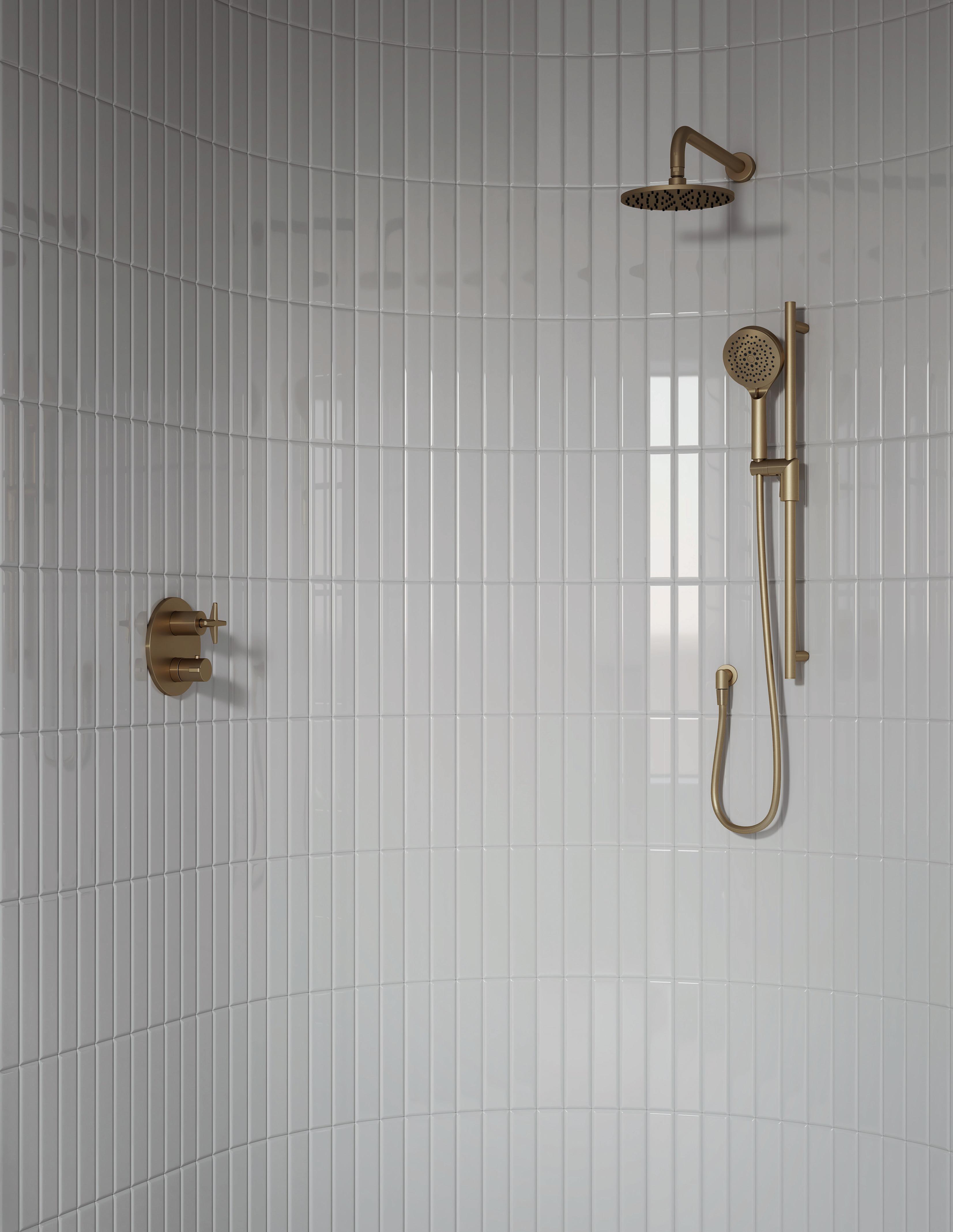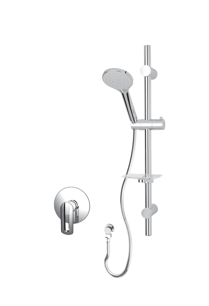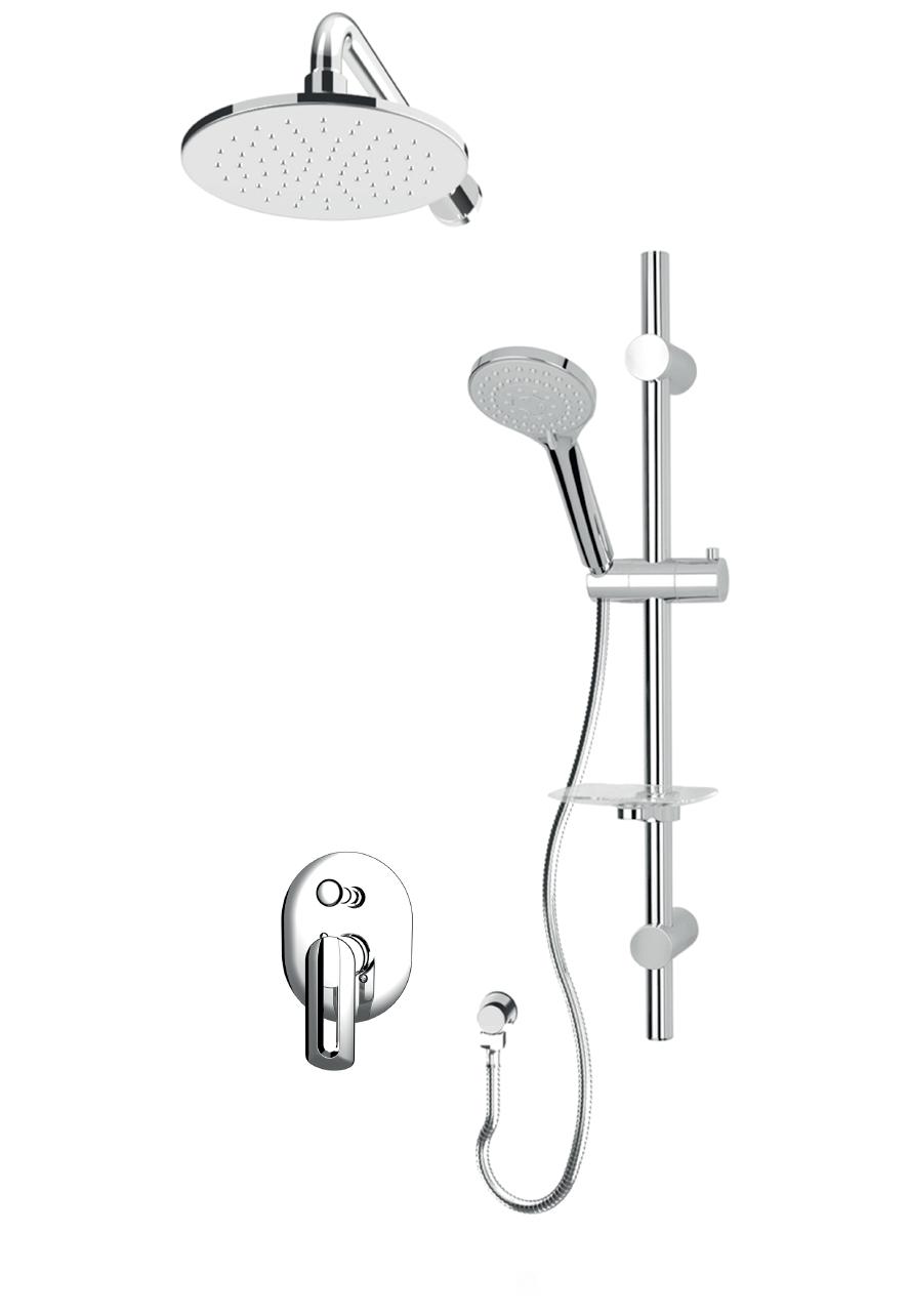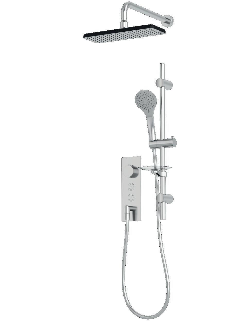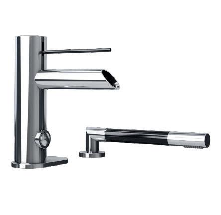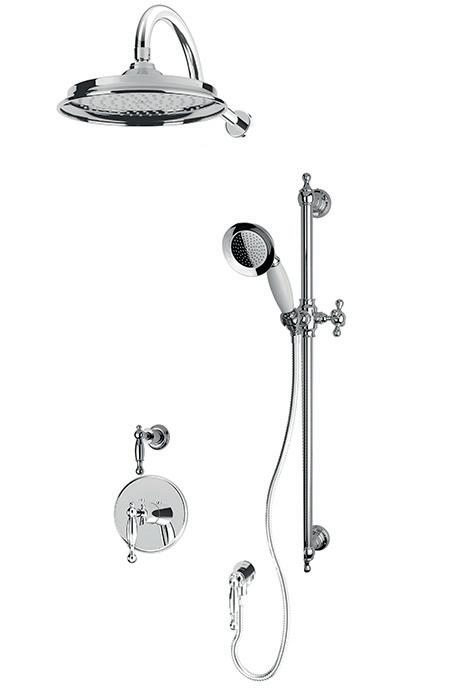 · Colonne de douche avec douchette coulissante, porte-savon inclus Shower column with sliding hand shower, soap holder included Débit: douchette: 8 L/min - 2,2 gpm, tête de douche: 8 L/min - 2,2 gpm