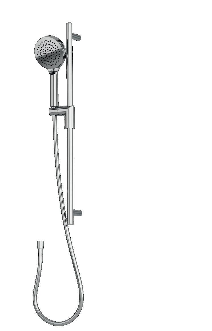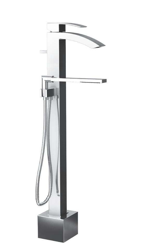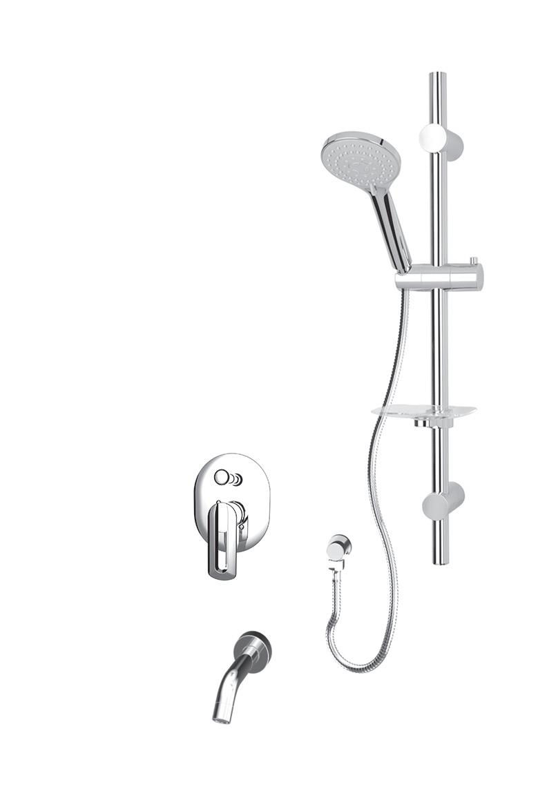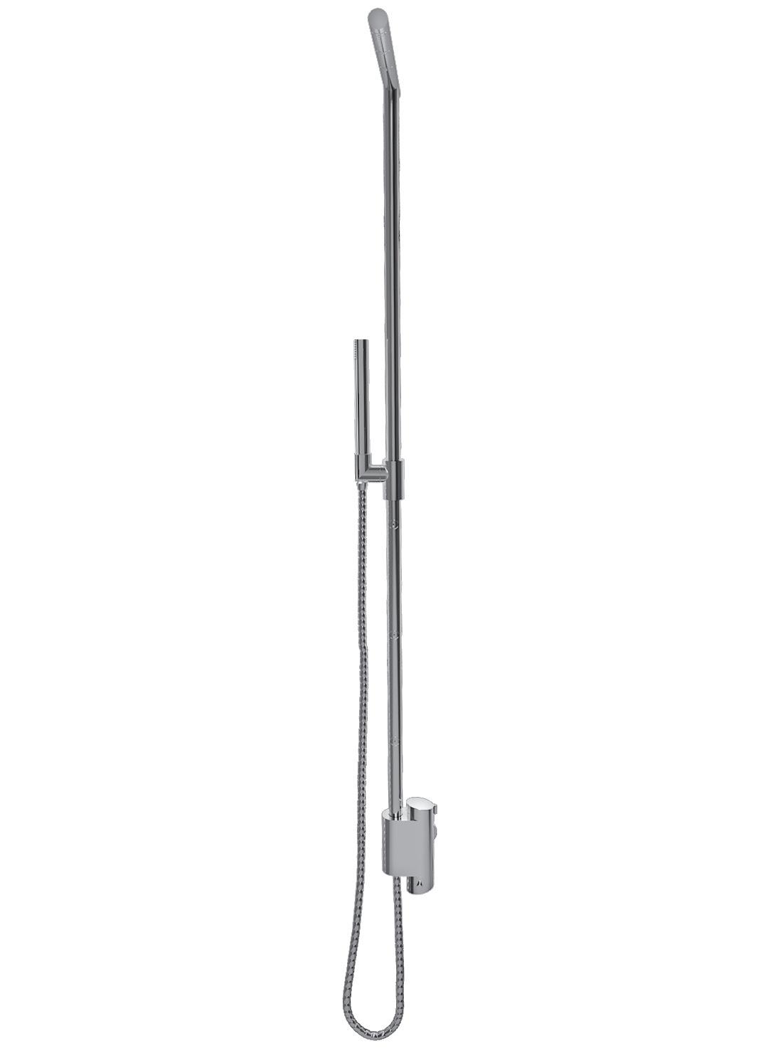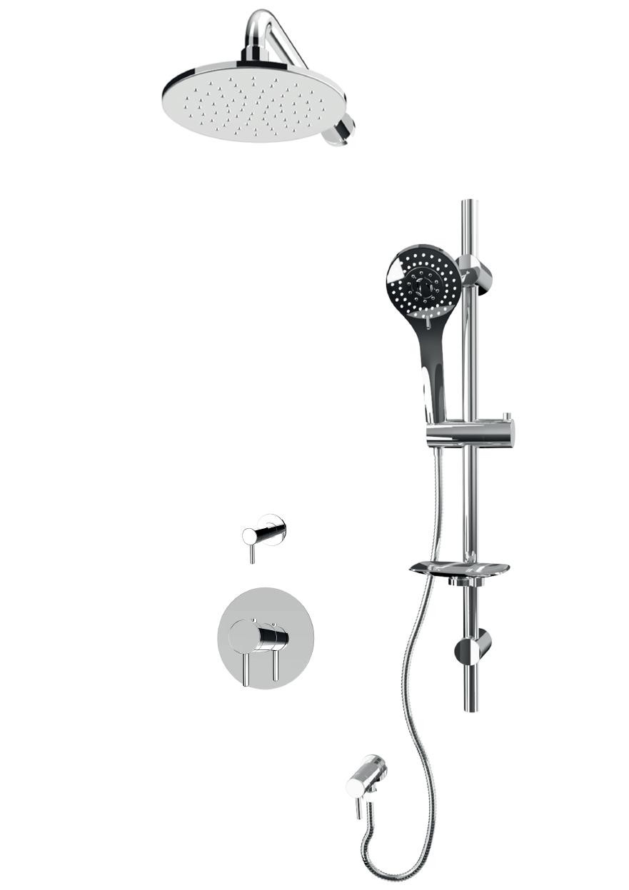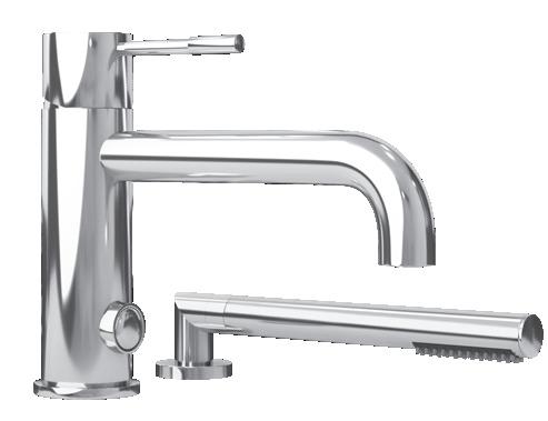 · Colonne de douche avec douchette coulissante, porte-savon inclus Shower column with sliding hand shower, soap holder included Débit: douchette: 8 L/min - 2,2 gpm, tête de douche: 8 L/min - 2,2 gpm