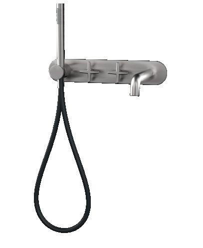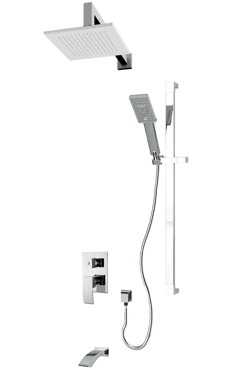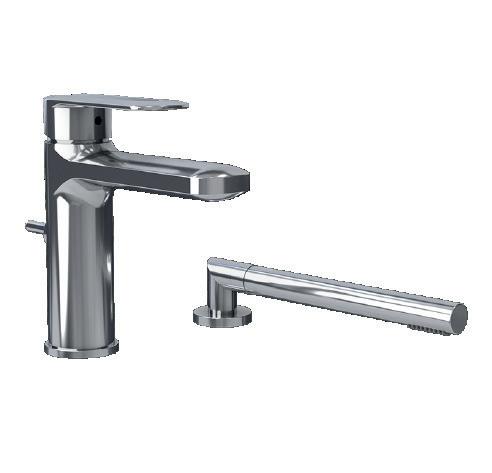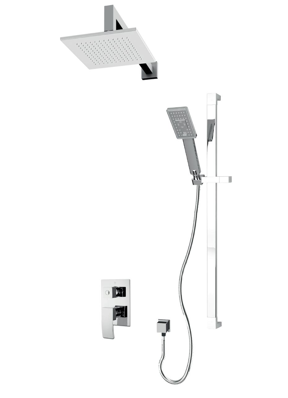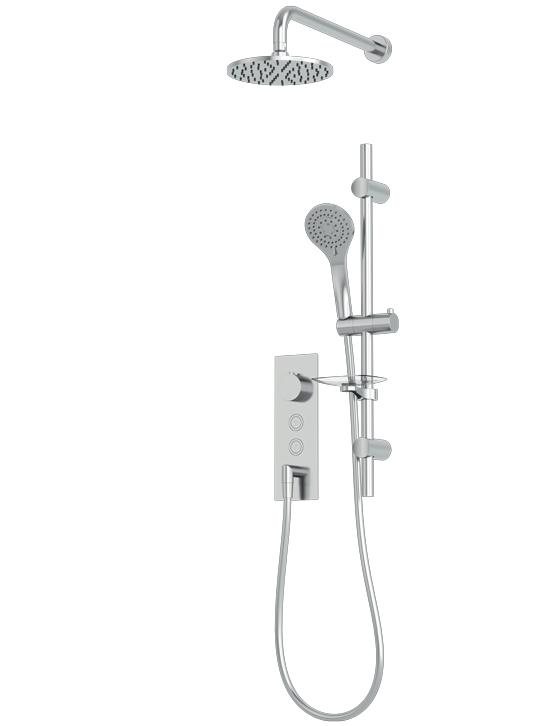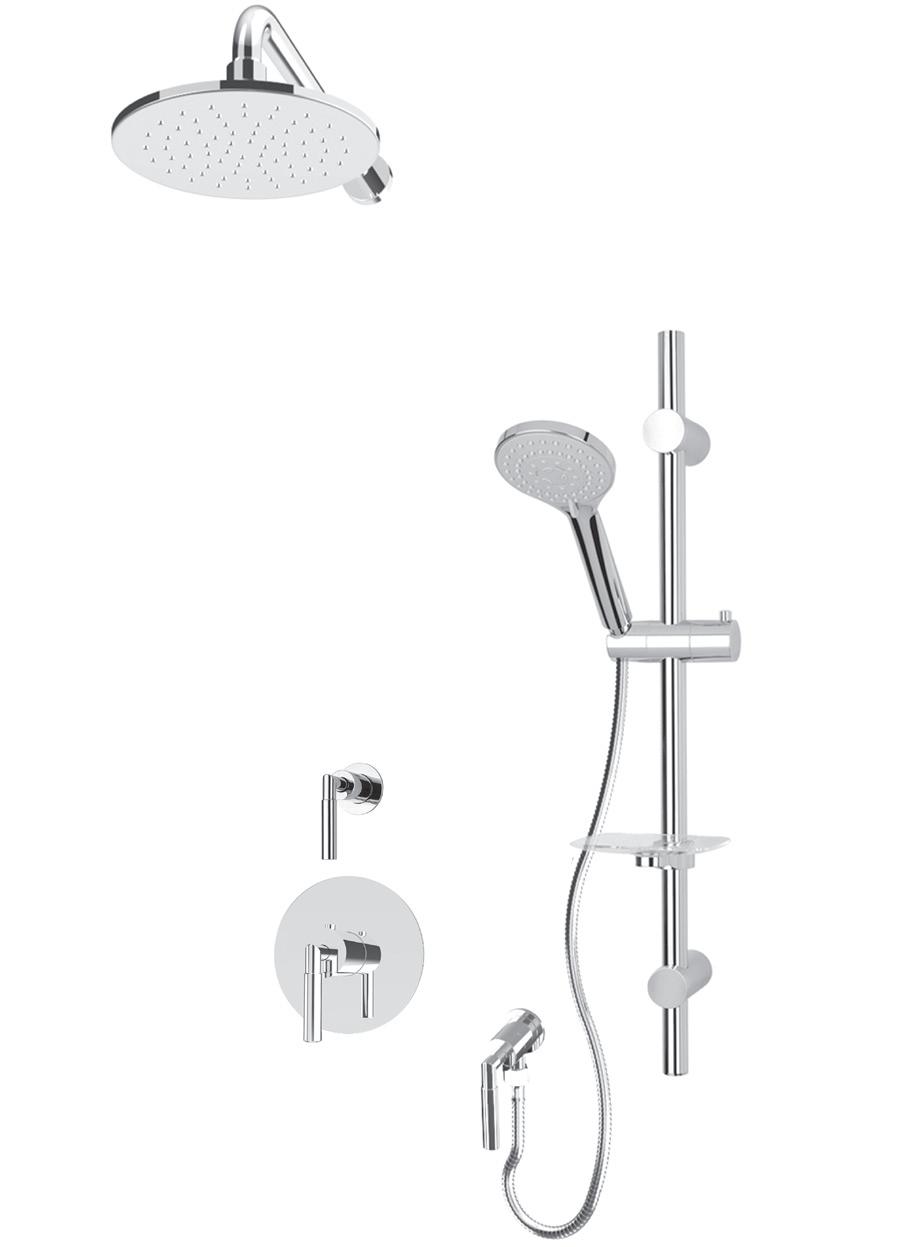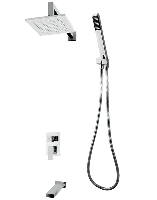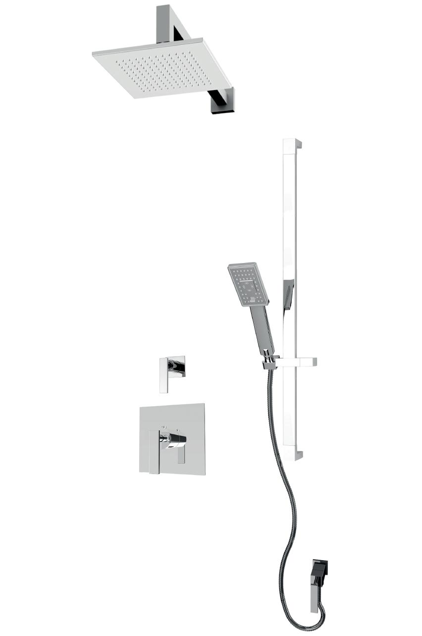 · Colonne de douche avec douchette coulissante, porte-savon inclus Shower column with sliding hand shower, soap holder included Débit: douchette: 8 L/min - 2,2 gpm, tête de douche: 8 L/min - 2,2 gpm