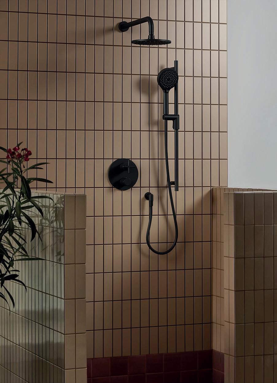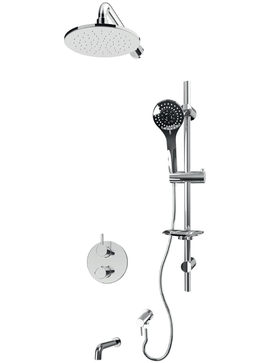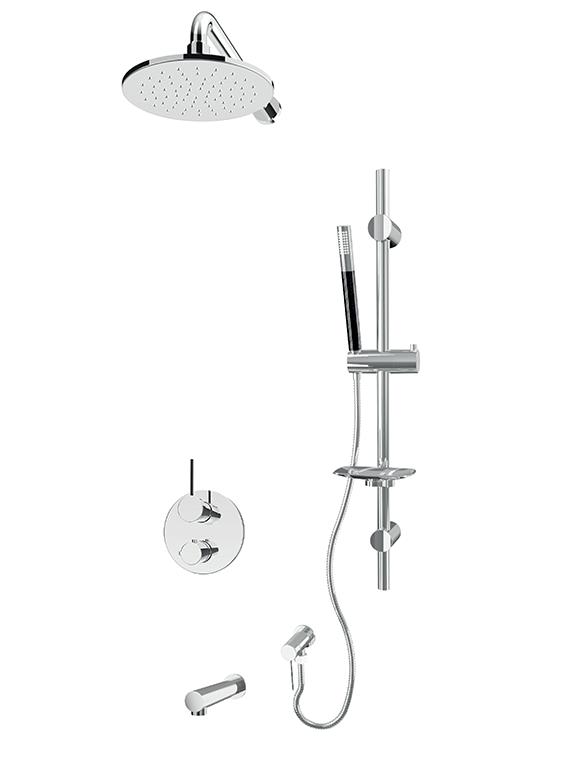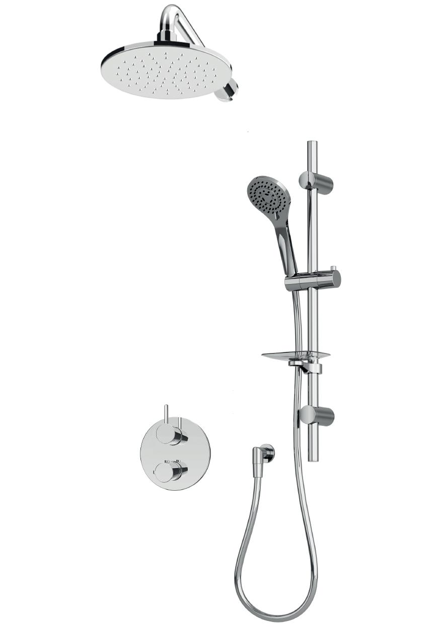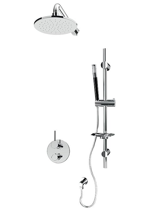 · Colonne de douche thermostatique avec douchette coulissante, tête et barre de douche à effet brumisateur