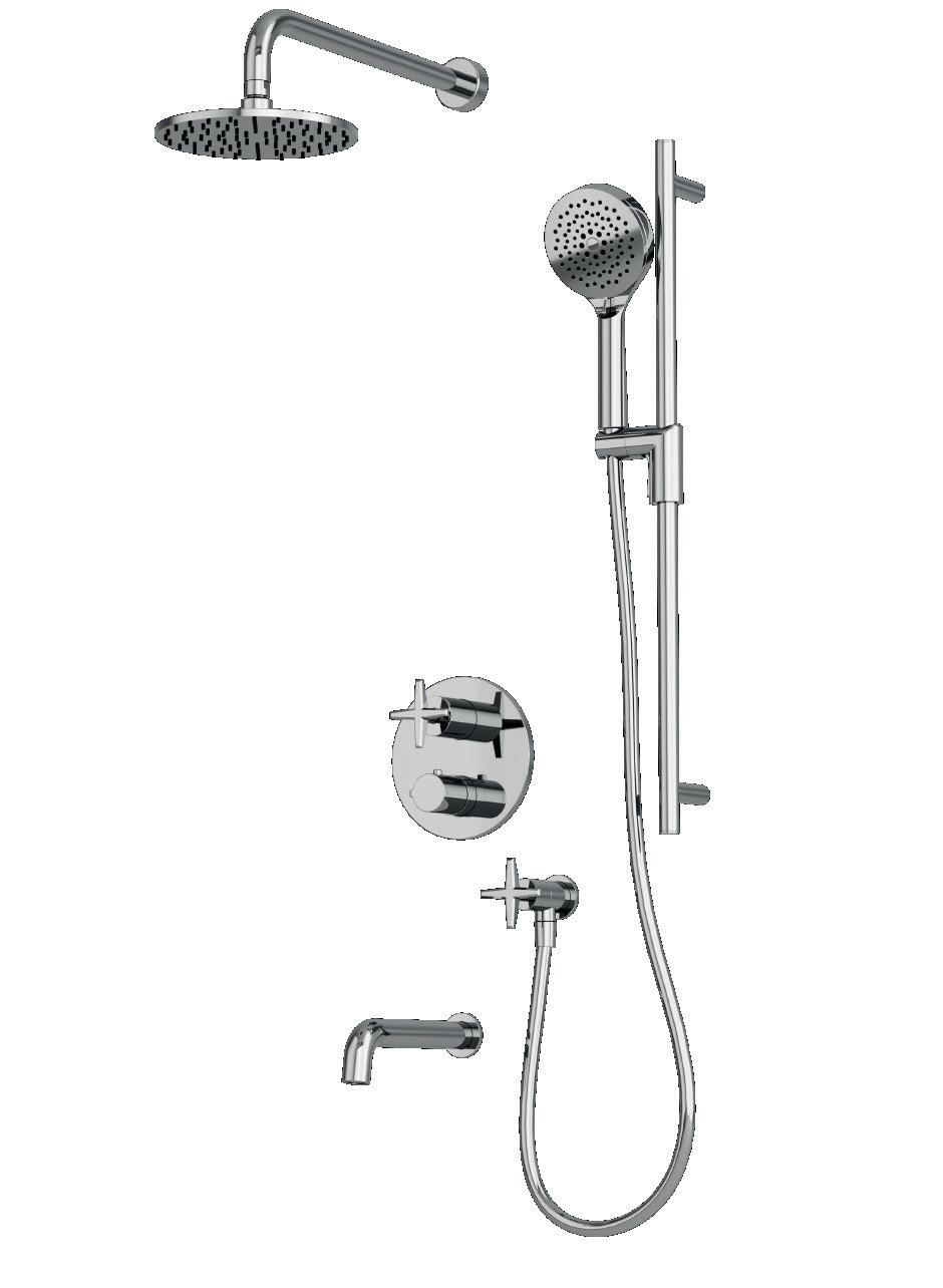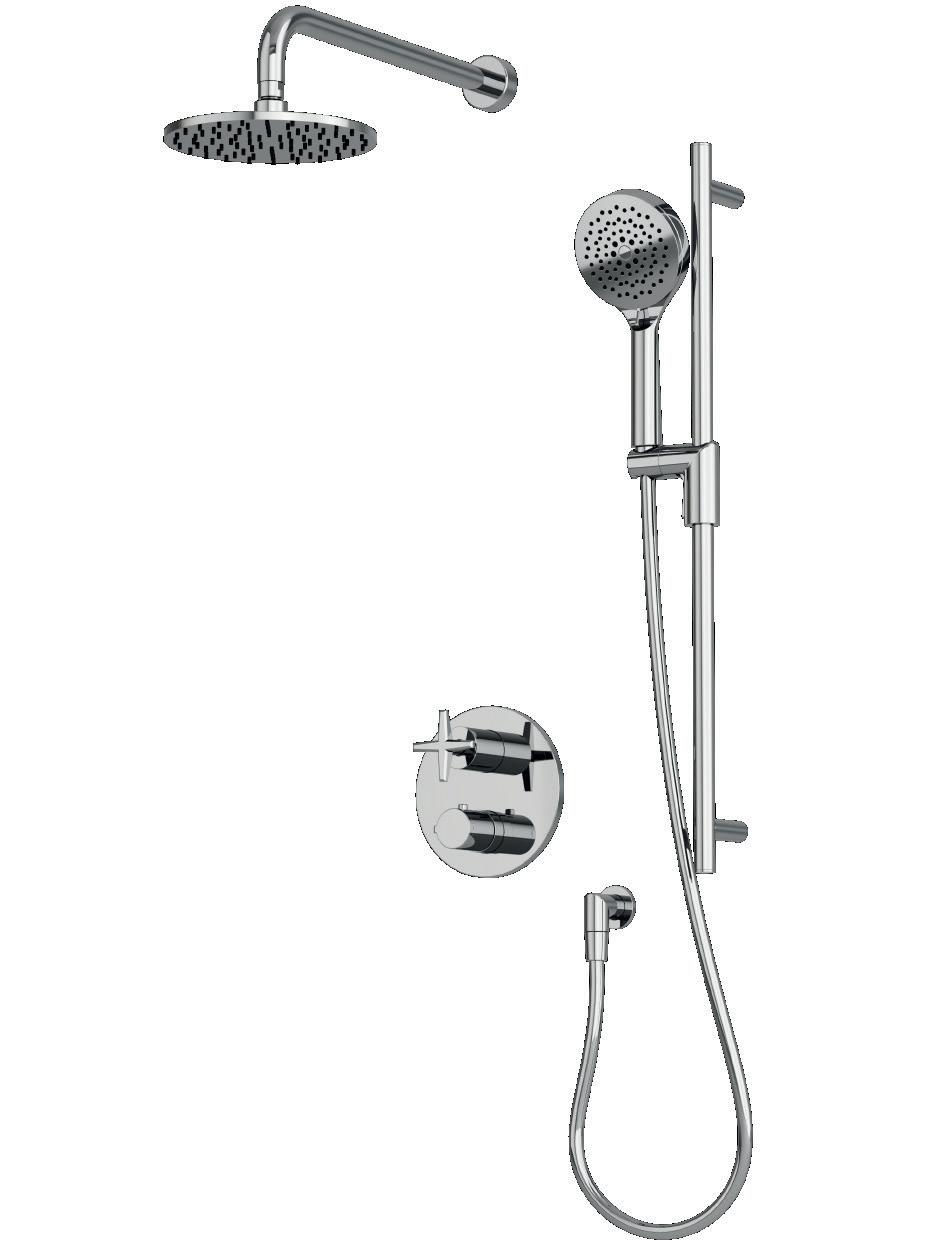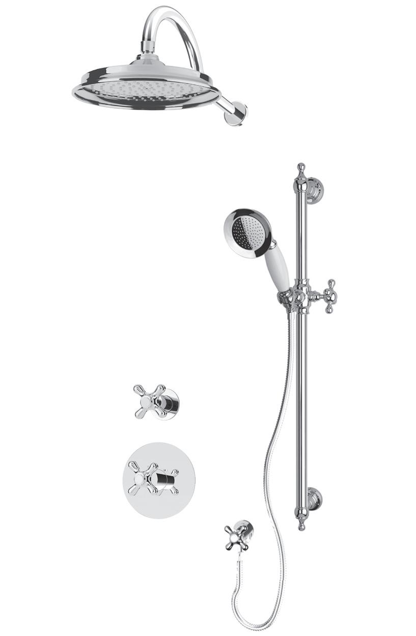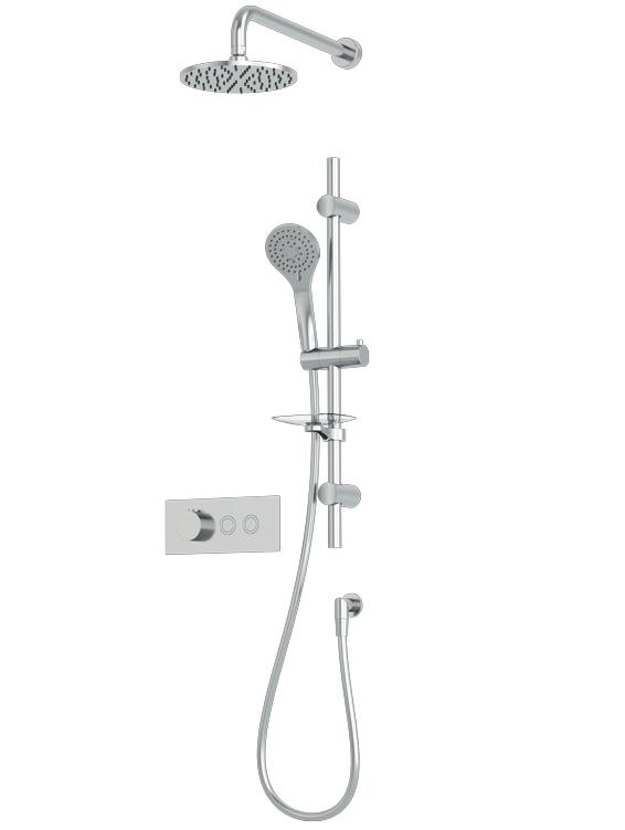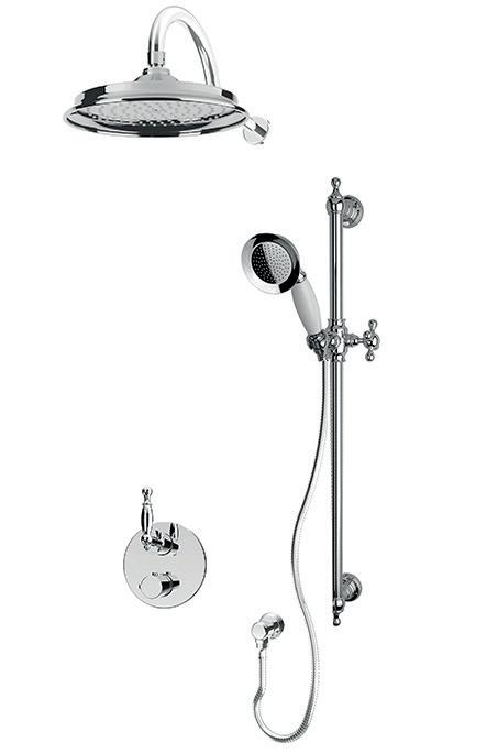 · Colonne de douche thermostatique avec douchette coulissante, tête et barre de douche à effet brumisateur
