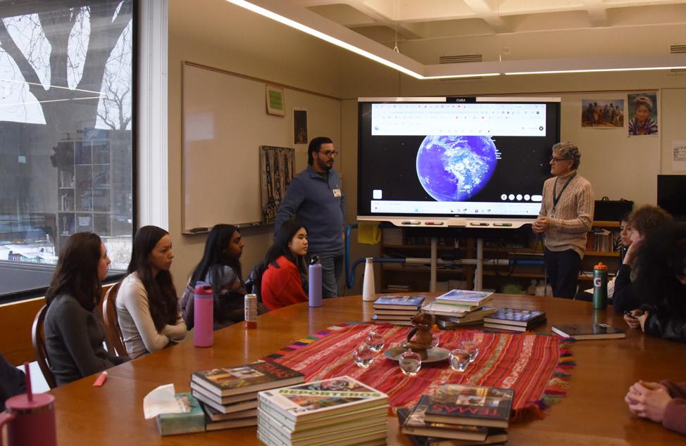 PERTINENT PRESENTATION. Guest speaker Carlos Piñero uses Google Earth to talk about his life in Venezuela. His lesson gave context to the U.S. strikes on Venezuelan military bases and the indictment and abduction of Venezuelan President Nicolás Maduro on Jan. 3. “I was hoping for students to be able to ask questions to somebody who is currently living under that repressive system,” Christine Piñero said.