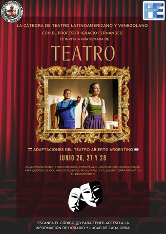 LA CÁTEDRA DE TEATRO LATINOAMERICANO Y VENEZOLANO CON EL PROFESOR IGNACIO FERNANDES TE INVITA A UNA SEMANA DE