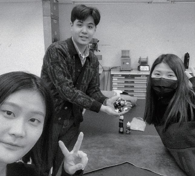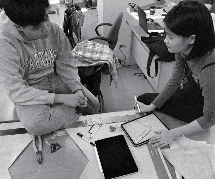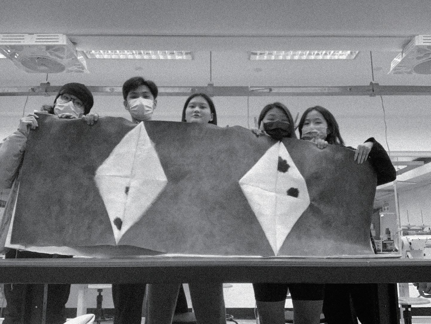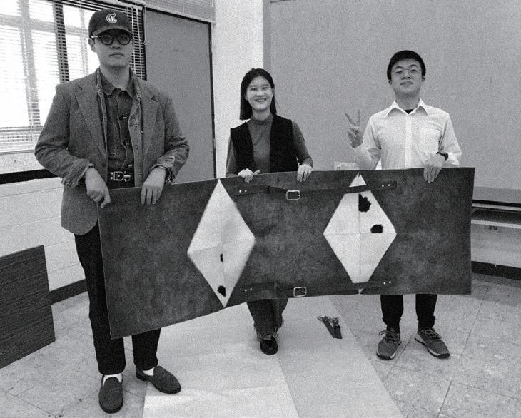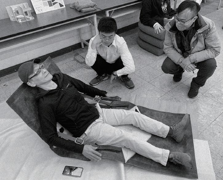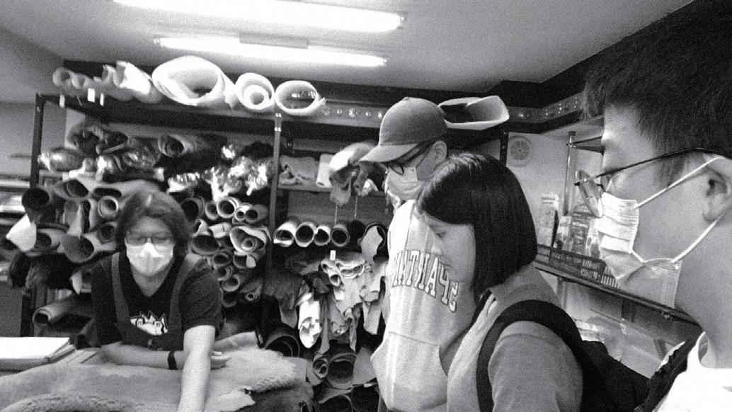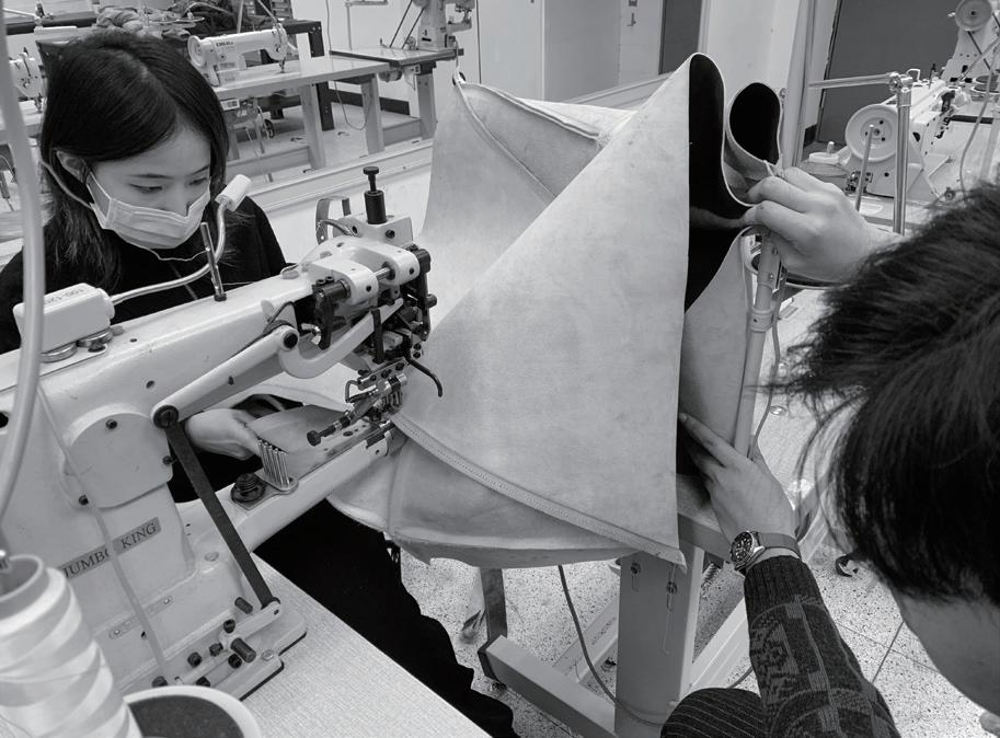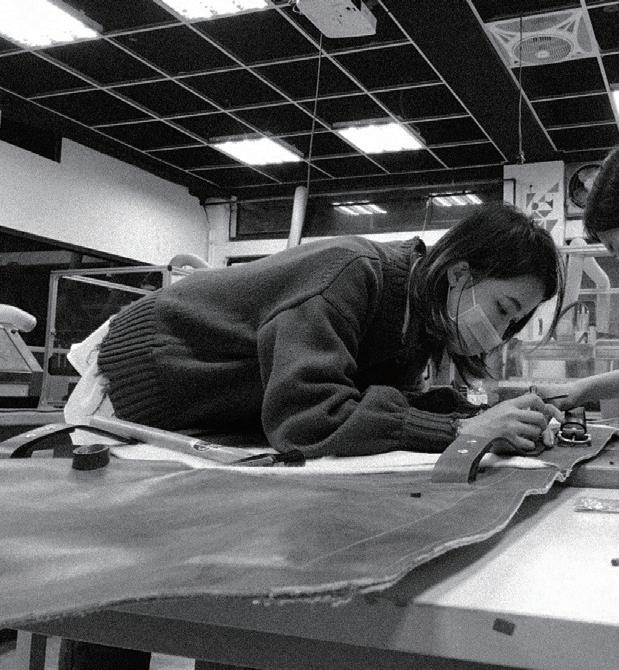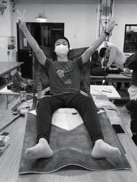 感謝我們在實踐服裝設計系及工設系的朋友鼎力相助,他們教會我們使用車縫 技術、皮革染料、在加工上給了十足的建議,以及日夜陪我們一起趕工。