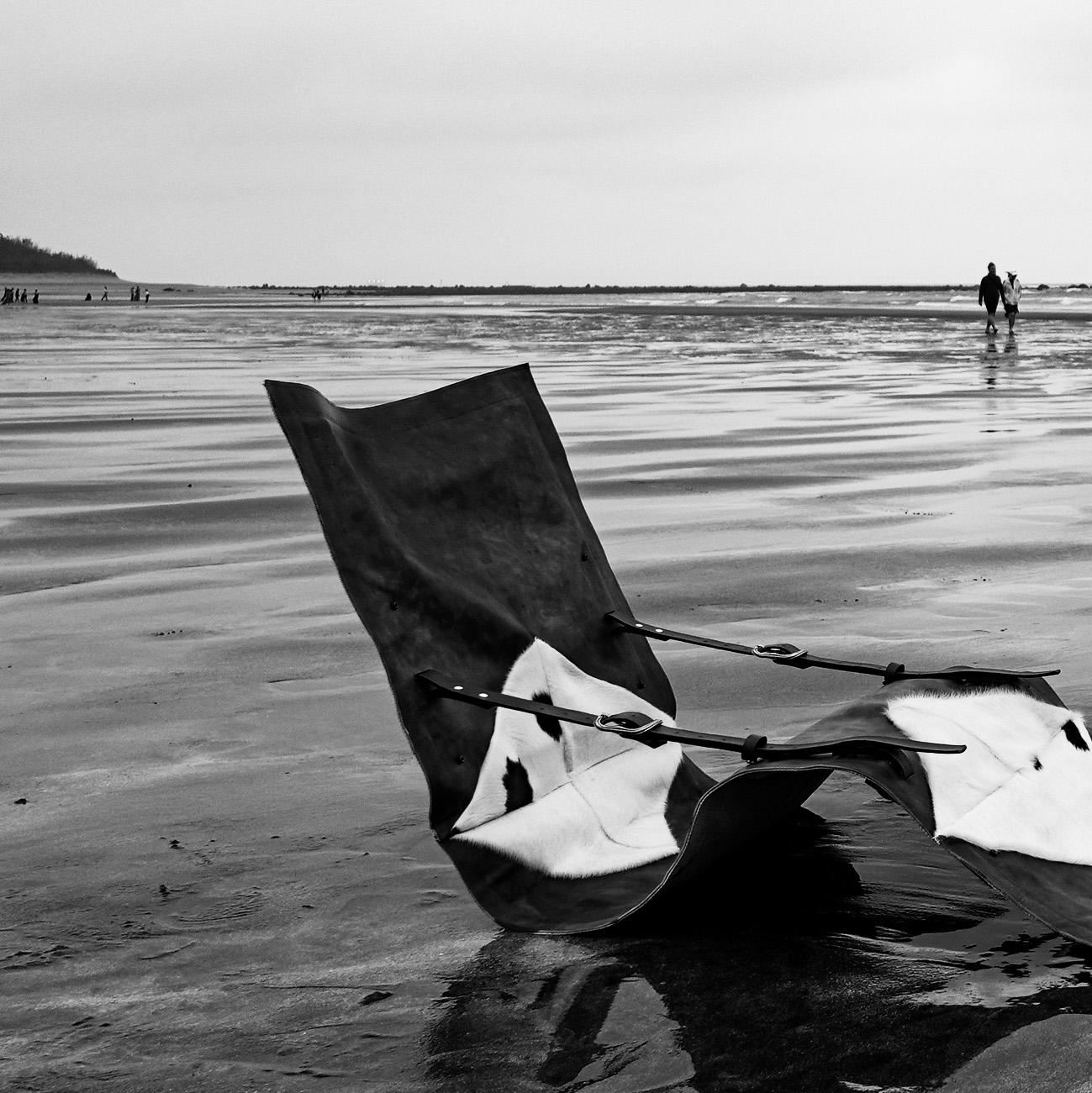 內部的結構使用彈簧鋼作為主體外觀及支撐結構,彈簧鋼的良好彈性及韌性,在支撐人體重量的同時,也能保持外觀的造型。 「~」lounge chair 並不是意義上的躺椅,與其說是家具,「~」更像是一件藝術品,表面的皮質以及毛皮透露著人類最初的 野性,配合現代的縫紉技術,使,「~」呈現出來的是理性、克制並極具觀賞性的一件家具。