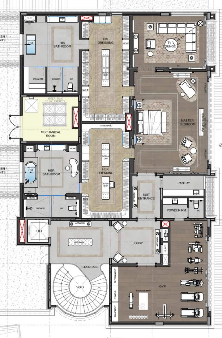 MASTER BEDROOM FURNITURE LAYOUT PLAN SHOWING MASTERBEDROOM SUITE