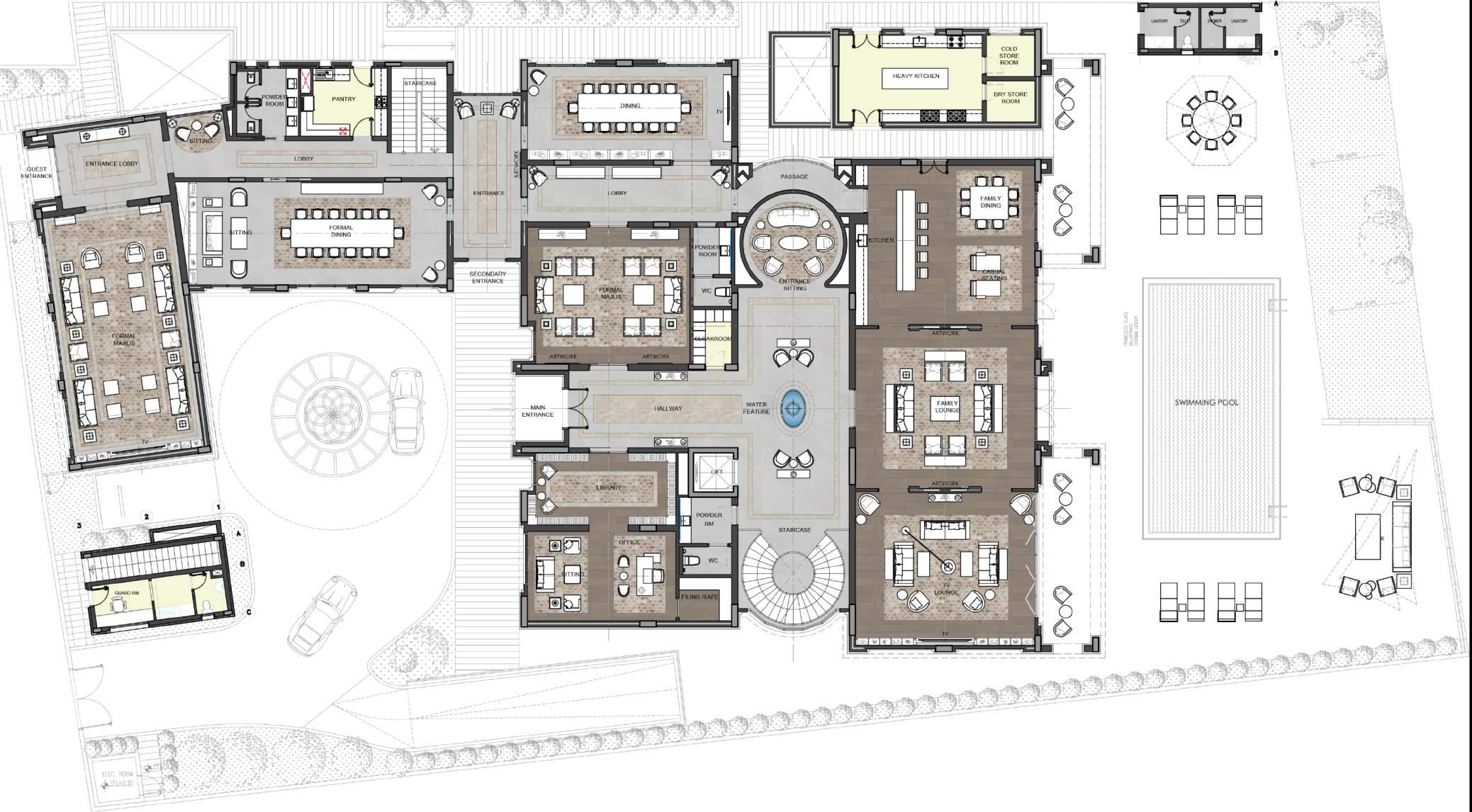 GROUND FLOOR RENDERED FURNITURE PLAN