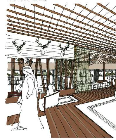 TYPICAL LODGE FURNITURE LAYOUT PLAN TYPICAL GUEST BEDROOM HAND SKETCH TYPICAL BATHROOM HAND SKETCH ENTRANCE WAITING AREA TO THE ARRIVAL BUILDING NIGHT VIEW OF THE ARRIVAL BUILDING