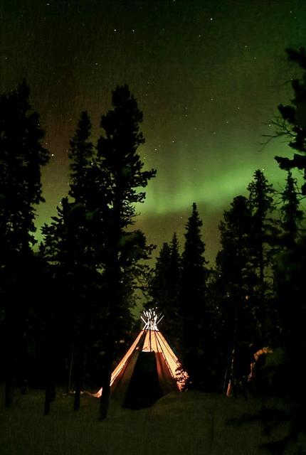Med lidt held viser nordlyset sig på himlen – men uanset hvad, kan du nyde stilheden og de smukke omgivelser. Du kan varme dig i lavvuen, hvor der serveres lette snacks og varme drikke.