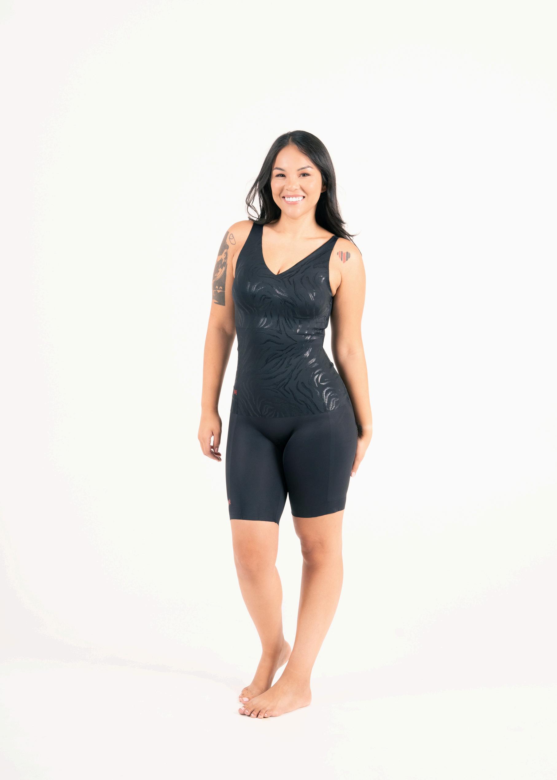 Unleash your fierce side with our V-Neck Sleek Shape in a shiny new, gilded tiger print.