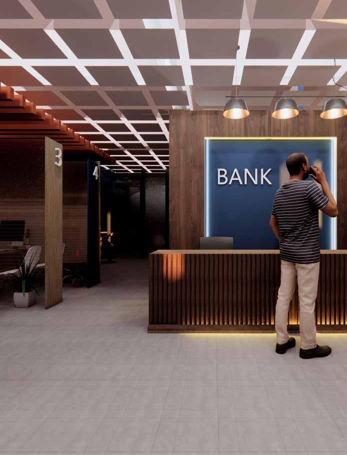 The final design successfully fulfilled all project requirements, creating a comfortable and inviting environment that exceeded expectations. Overall, the project demonstrates how careful attention to design principles can transform a corporate bank interior into a space that not only meets the functional needs of its users but also enhances their experience.