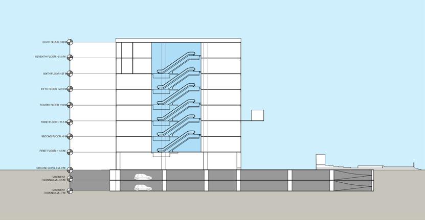 Furthermore, the building includes a basement parking facility, which is designed across two levels. This provides ample parking space for visitors and tenants, while also optimizing the use of space within the building. The parking area is equipped with elevators to provide easy access to the building’s upper levels.