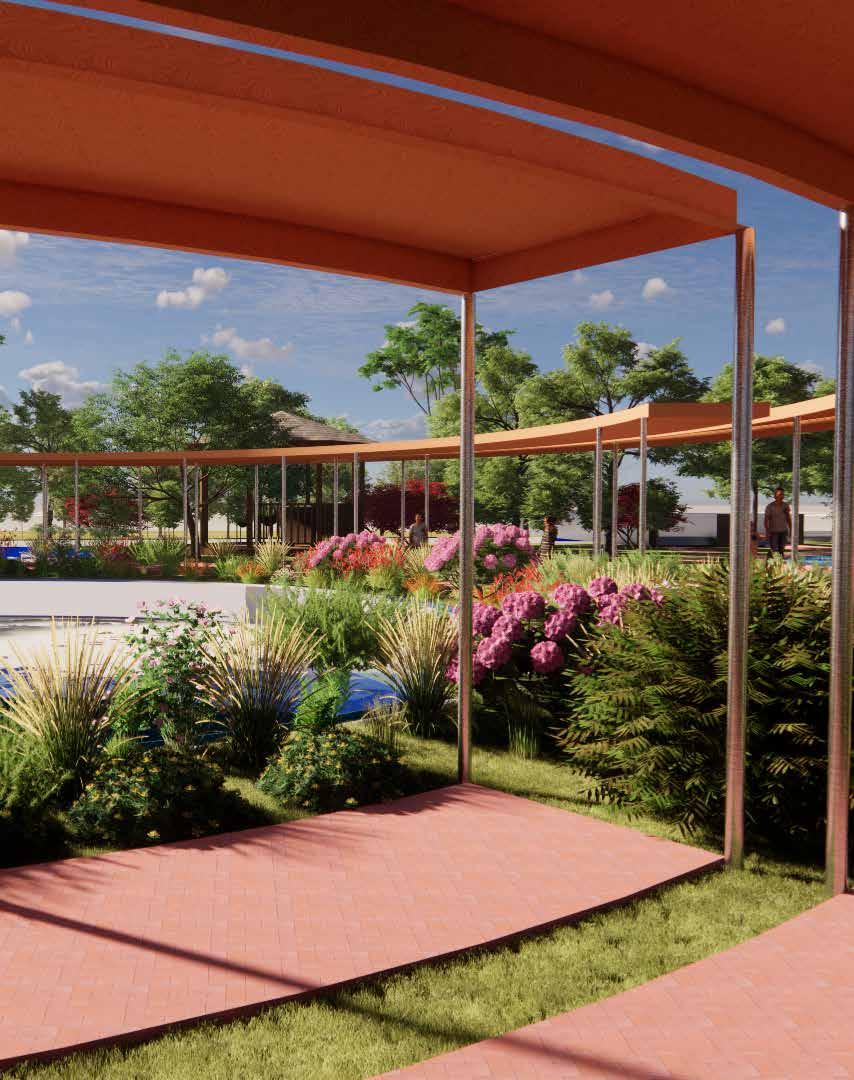 Rock garden Rock garden seating Fish market with existing trees foliage Aromatic trees Composting pit