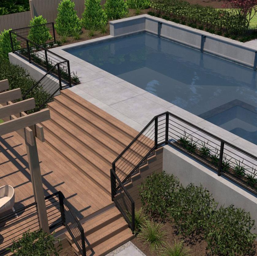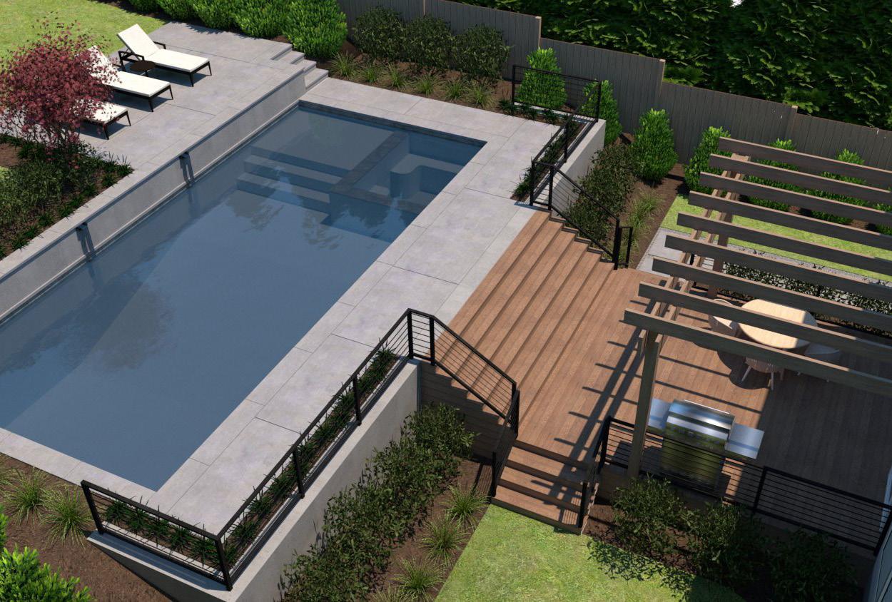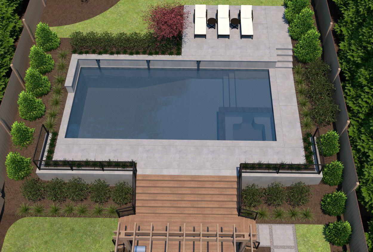 This professional project was for a family looking to add a small swimming pool and patio area in their unused backyard. The site had strict impervious coverage and tree CRZ restrictions adding a challenge to the design.