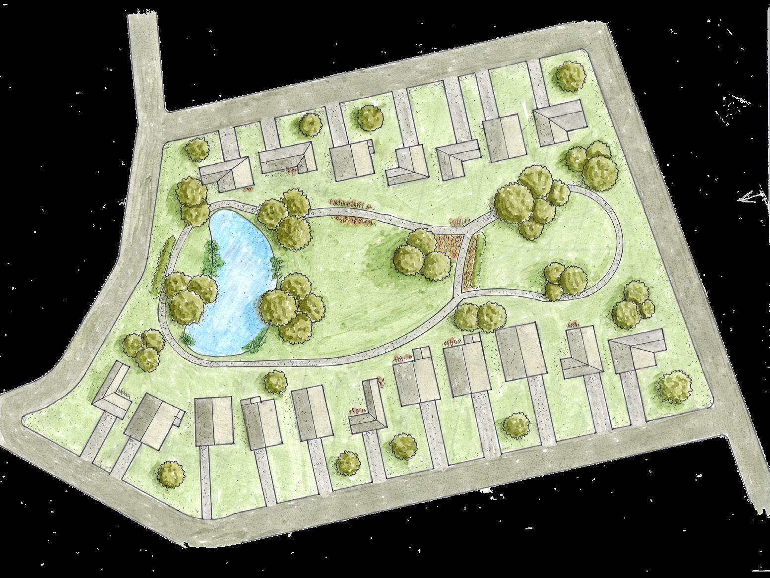 This project features a housing development design on a undeveloped site in Athens, GA. The design focuses on maximizing number of homes and bringing the community together through pocket neighborhoods shared green spaces, in addition preserving land for recreation