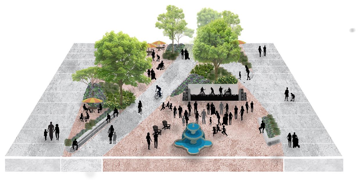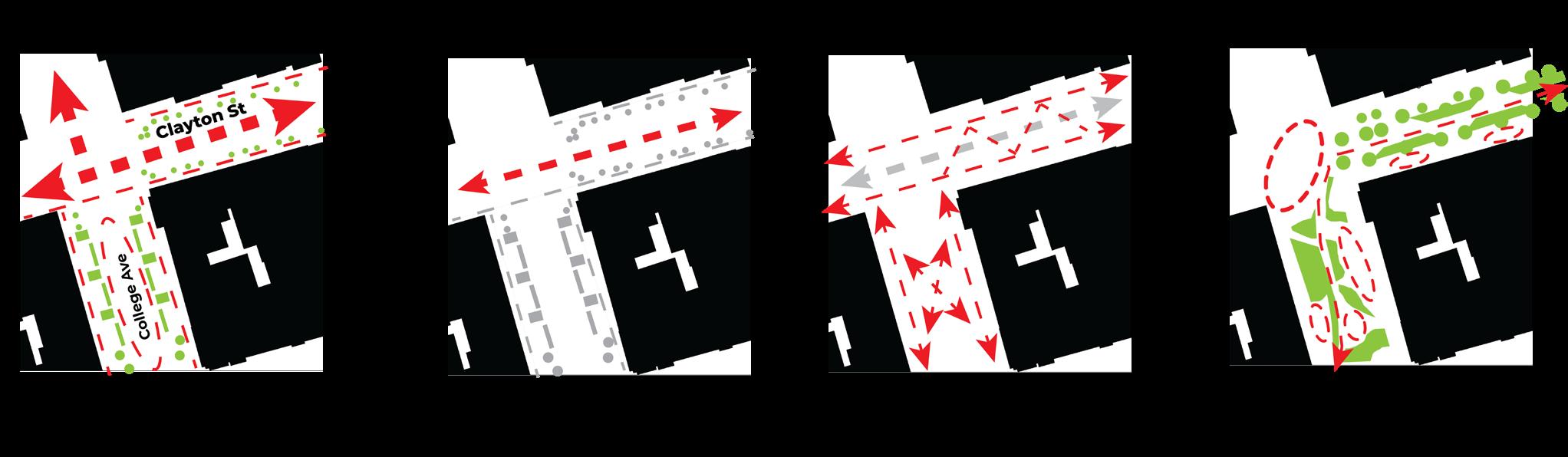 This 3rd year project at UGA focuses on creating car free pedestrian streets in Athens GA downtown. There will now be a seamless connection from block to block making pedestrian travel easier than ever. The new wider sidewalks make the navigation of pedestrians run smoothly with the high foot traffic the area sees. The businesses in the car free core wont lack efficiency in the update due to the addition of a lane for deliveries and trash pickup to ensure that they run smoothly.