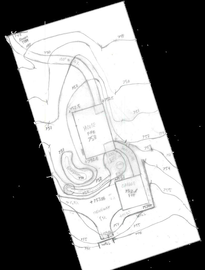 Preliminary grading plan sketch, focus on preserving the maximum number of existing trees.