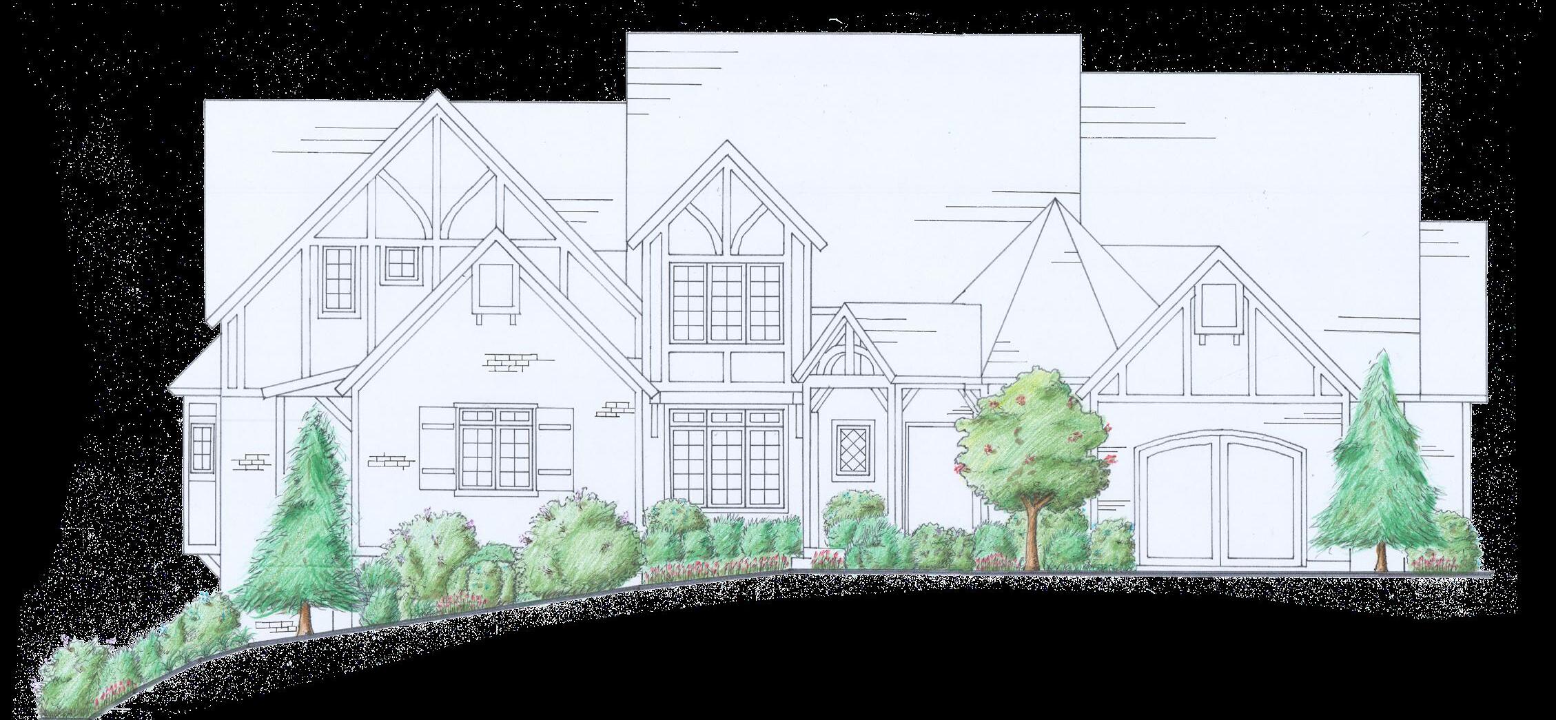 The curvilinear planting bed lines provide interest and different perspectives at all angles of the site. Strategically placed trees and shrubs bring a sense of unity to the estates front lawn. Both hand and computer graphic plans are shown of the same design.