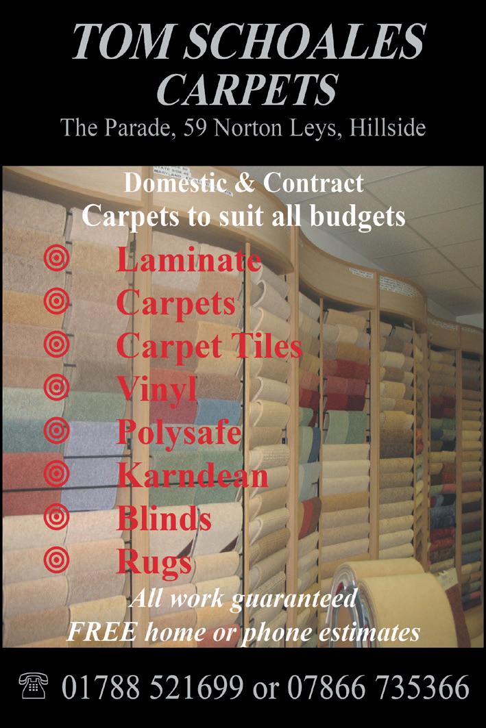 Please mention ‘ The Rugby Register’ when replying to adverts, thank you. 5 Like us on Facebook E 01604 532700 Nu-Look Conservatory Roof Solutions Arthur Street, NN2 6EG Is your conservatory too hot in the summer and too cold in the winter? Before After Transform your conservatory Free No Obligation Quote Over 3000 Installations Save on your energy costs with a U-value of 0.14 Finance Options Available from just £99.00 Visit our showroom Buy now, payuntilnothing 2024 VISIT OUR WEBSITE Revel Funeral Care “One family caring for another” Independent Family Funeral Directors Serving the Community of Rugby & Surrounding Areas • Professional and caring team under the supervision of Jaime Hailstone. • Available 24 hours a day. • Home visits by appointment. • Private arranging suite & Chapel of Rest. Revel Funeral Care 63 Overslade Lane, Rugby, CV22 6ED. 01788 519577 info@revelfuneralcare.co.uk www.revelfuneralcare.co.uk