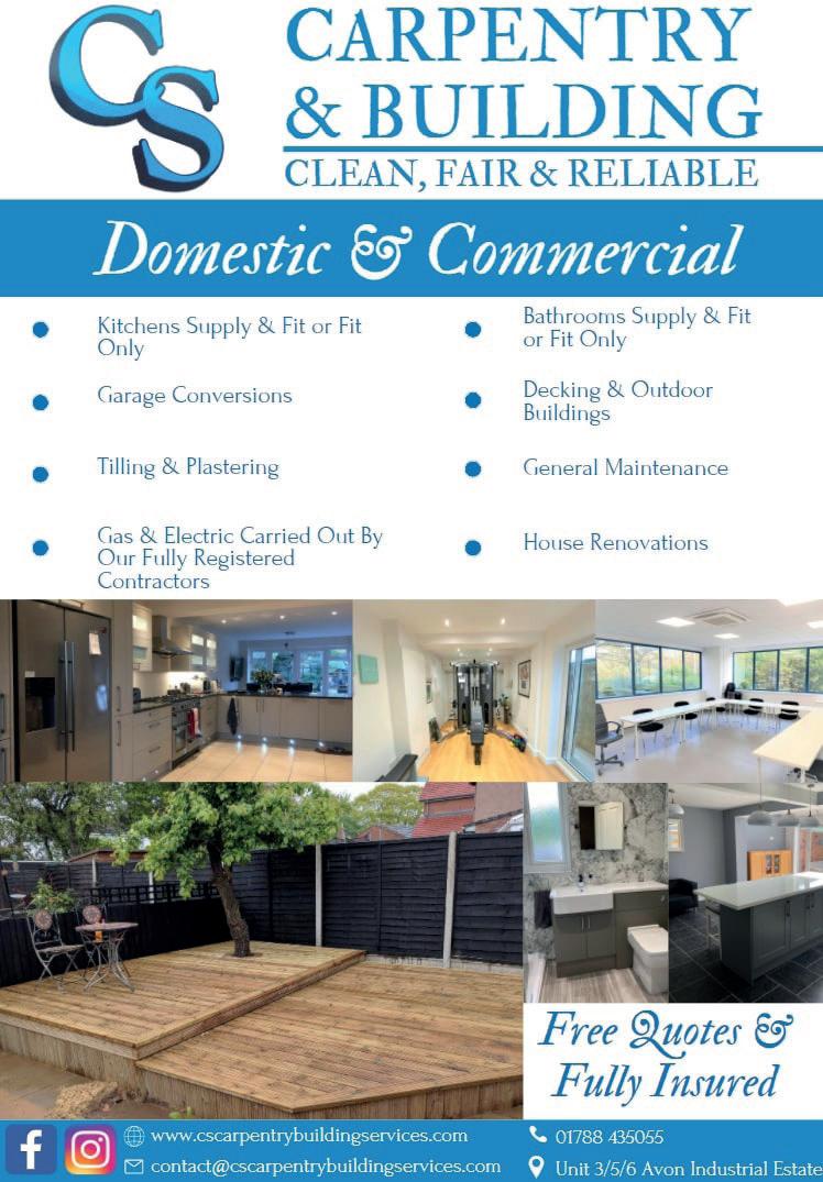 To advertise call 01788 878297 or email: enquiries@rugbyregister.co.uk 10 E Like us on Facebook For all those jobs you keep meaning to do... • Plumbing • Carpentry • Painting • Decorating • Flooring • Plastering • Tree Works • Renovations • House Clearance • Gardening & Clearance • Fencing • Guttering • Decking & Patios • Kitchen & Bathroom All forms of internal and external property maintenance undertaken. 07880 748 778 hello@sjgmaintenance.com www.sjgmaintenance.com