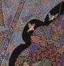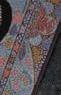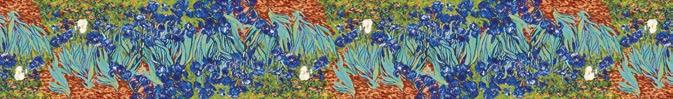 To render the painting as a runner, the design was flipped several times to create an undulating flow of irises. The Tufenkian rug artist, Kazumi painstakingly matched yarn colors, using twenty six color placements. In a three-year process of making and reviewing strikeoffs, the final choices of wool or silk yarn were made, plus carving the pile to create the impressionistic look of a Van Gogh.