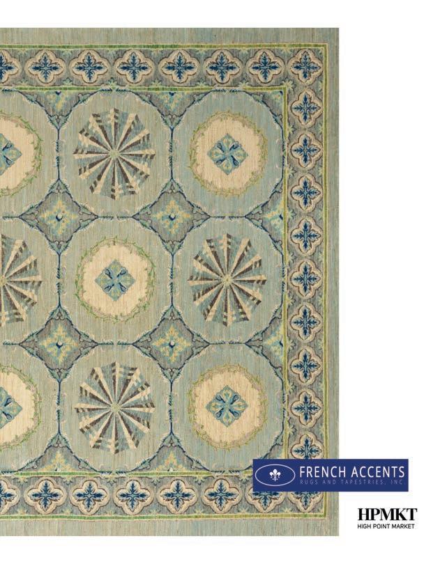 The High Point Market is the largest home furnishings industry trade show in the world, with over 10 million square feet by roughly 2000 exhibitors throughout about 180 buildings. French Accents (shown here) is just one of the market powerhouses we chat with in HPMKT SPRINGS OPEN, page 45. farugs.com