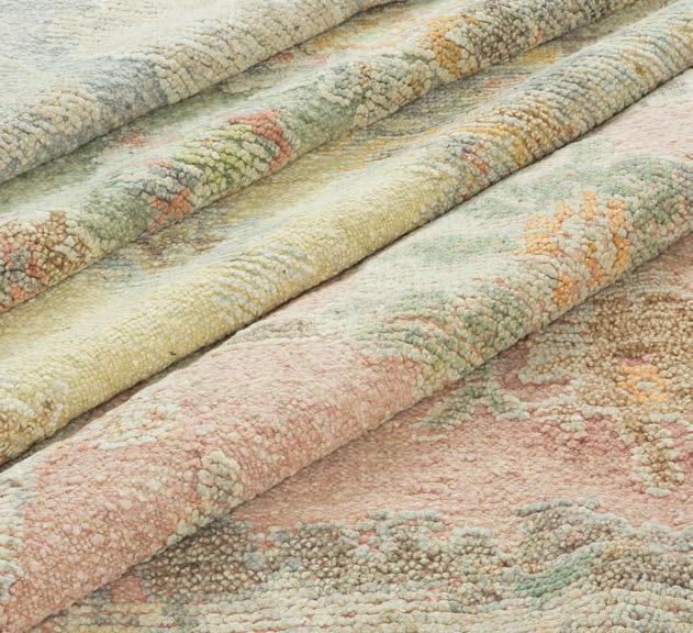 “Abstract and transistional designs are machine-woven with exquisite detail in soft, luxurious viscose at 2M points,” adds Moussavi.