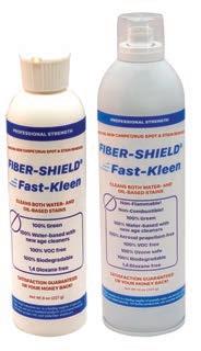 From well-known brands like FIBER-SHIELD® and KARPETCRYL® soil and stain repellents to the professional-grade water based spot cleaners such as FAST-KLEEN for carpets and FAST-KLEEN FOAM for furniture, all of the company’s products comply with environmental regulations and are safe to use as directed.