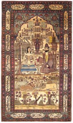 which was the Pictorial Kashan, in which the Kashan rug would envision a landscape, or in some cases, people. In rare instances, they would depict both, with the addition of poetry.