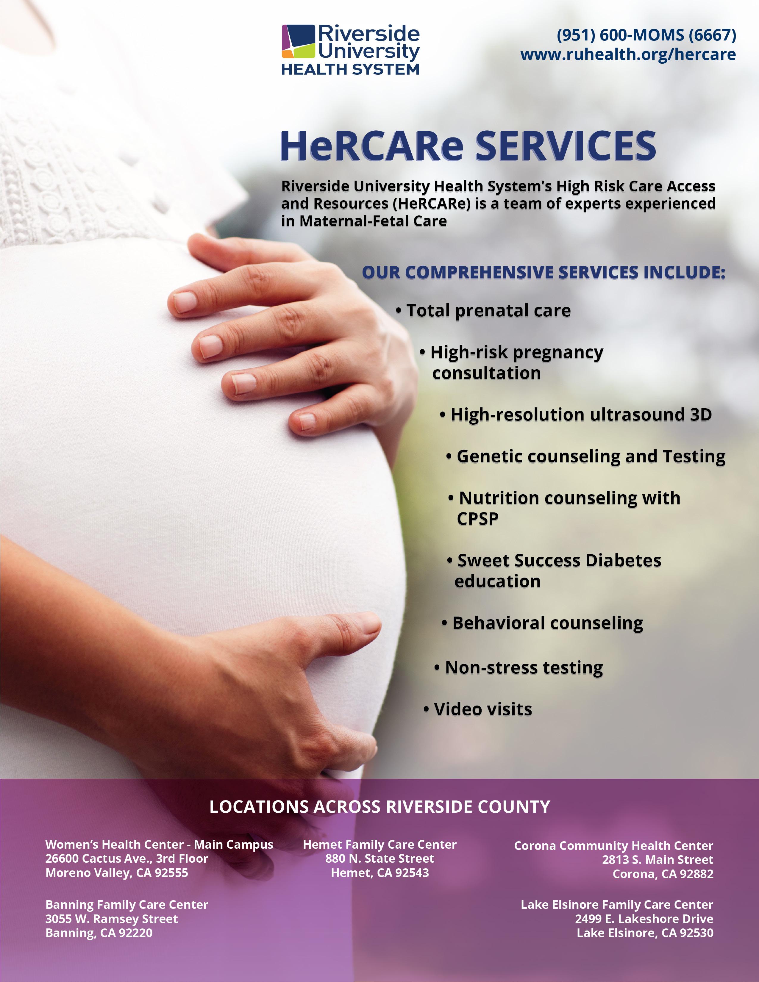 optimize resources and create cultural change that improves the health of mothers and their children. RUHS is uniquely positioned to lead the way in developing this approach that will improve the health of high-risk pregnant mothers and their unborn children by utilizing 13 Community Health Centers that are strategically placed throughout the county as well as the Medical Center located in Moreno Valley.