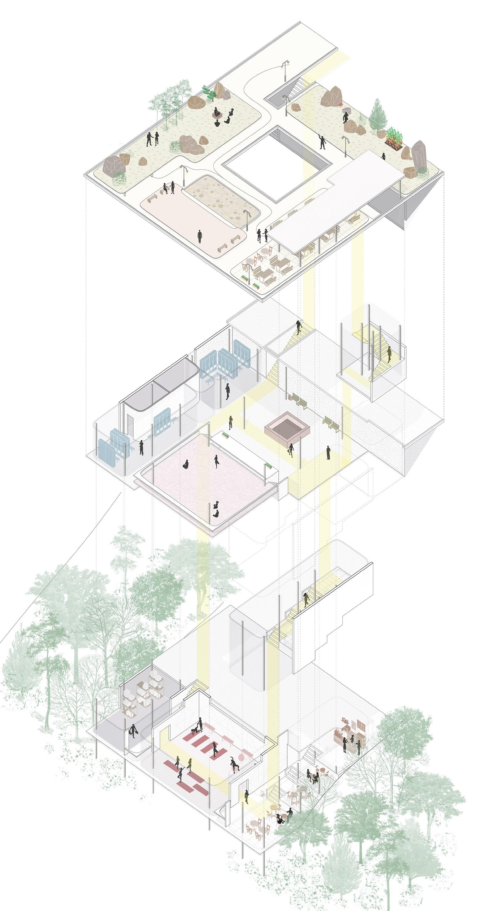 Role: I focus on site analysis, story board, circulation axon, longitudinal and transverse sections, models. ARC408 . FALL 2022 . SOA