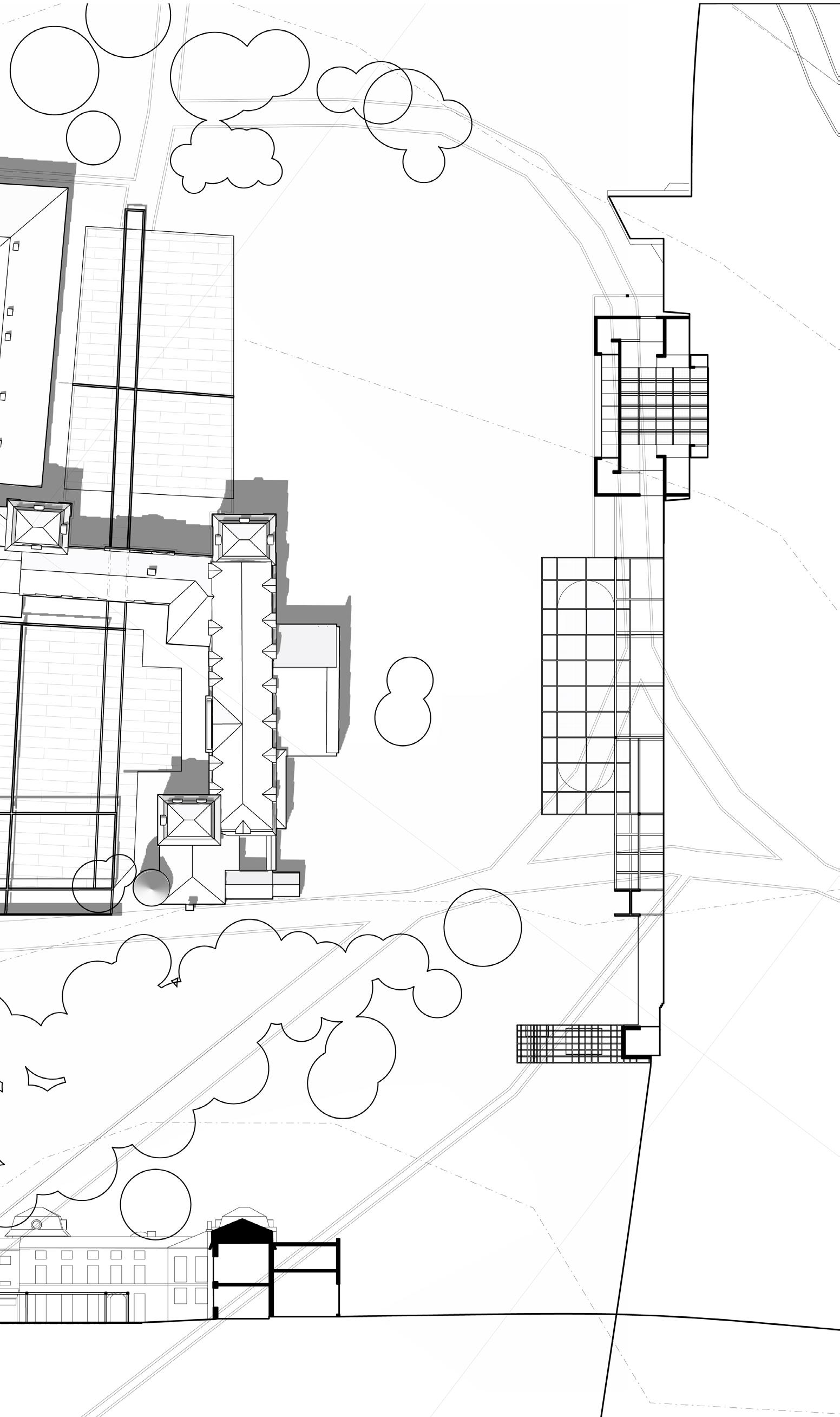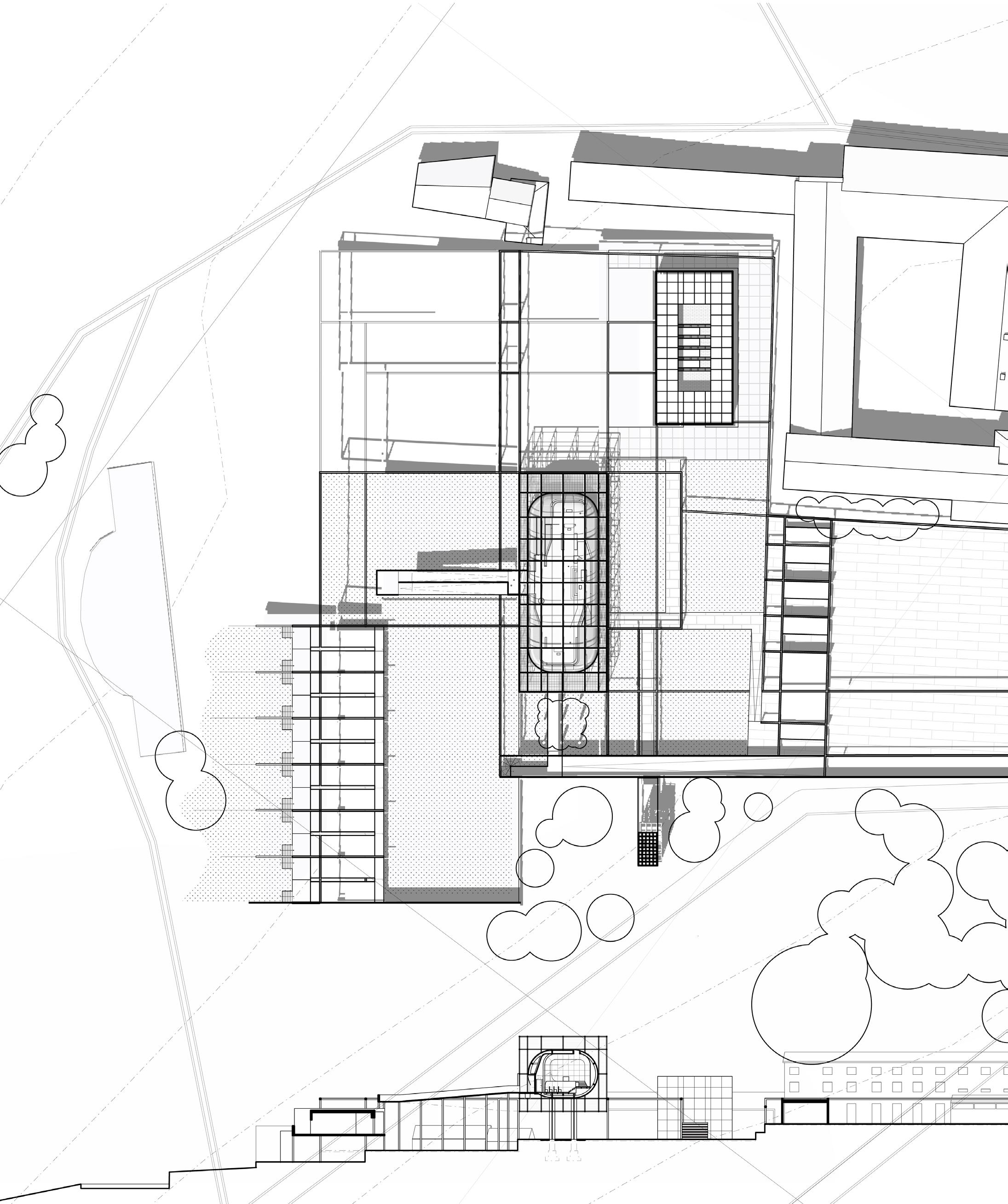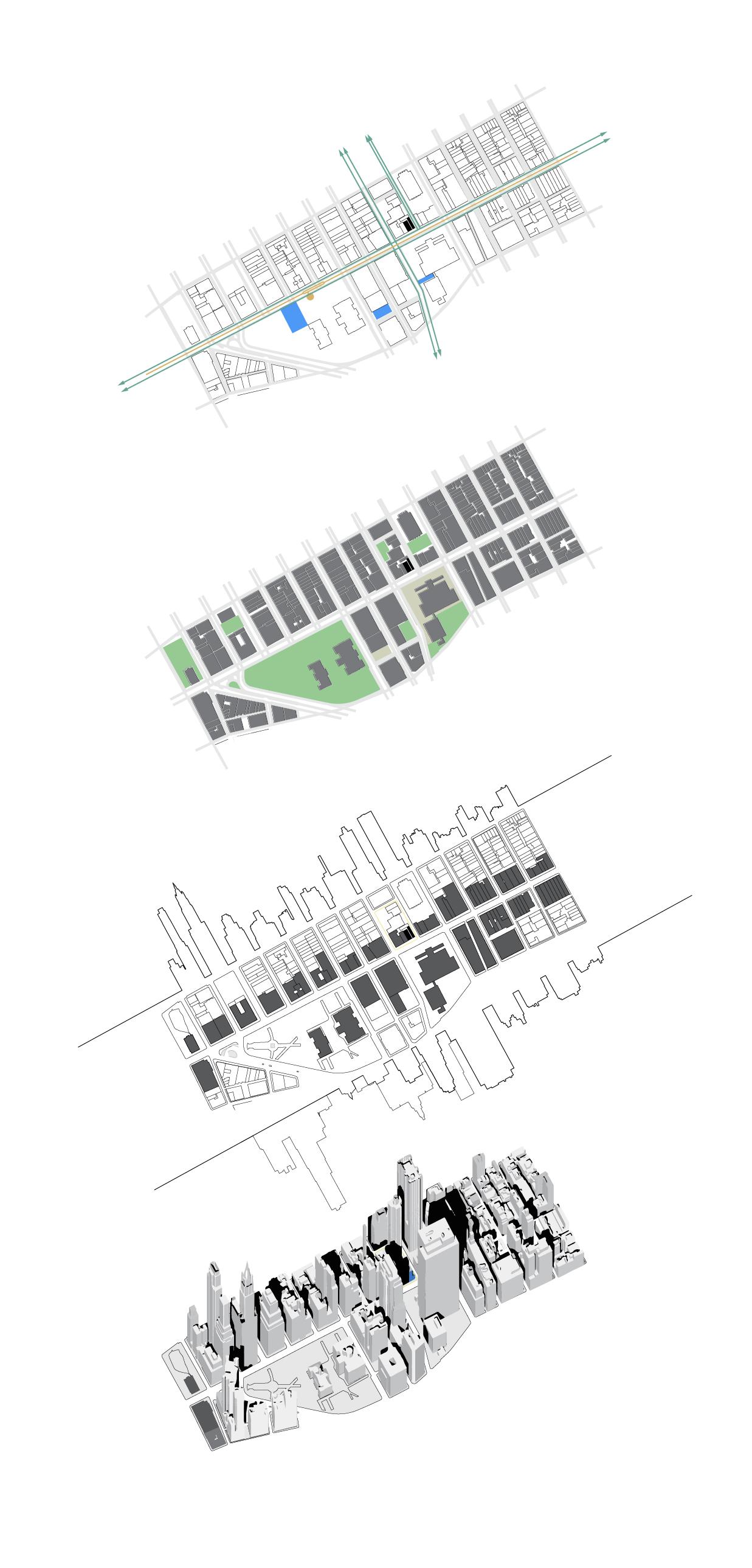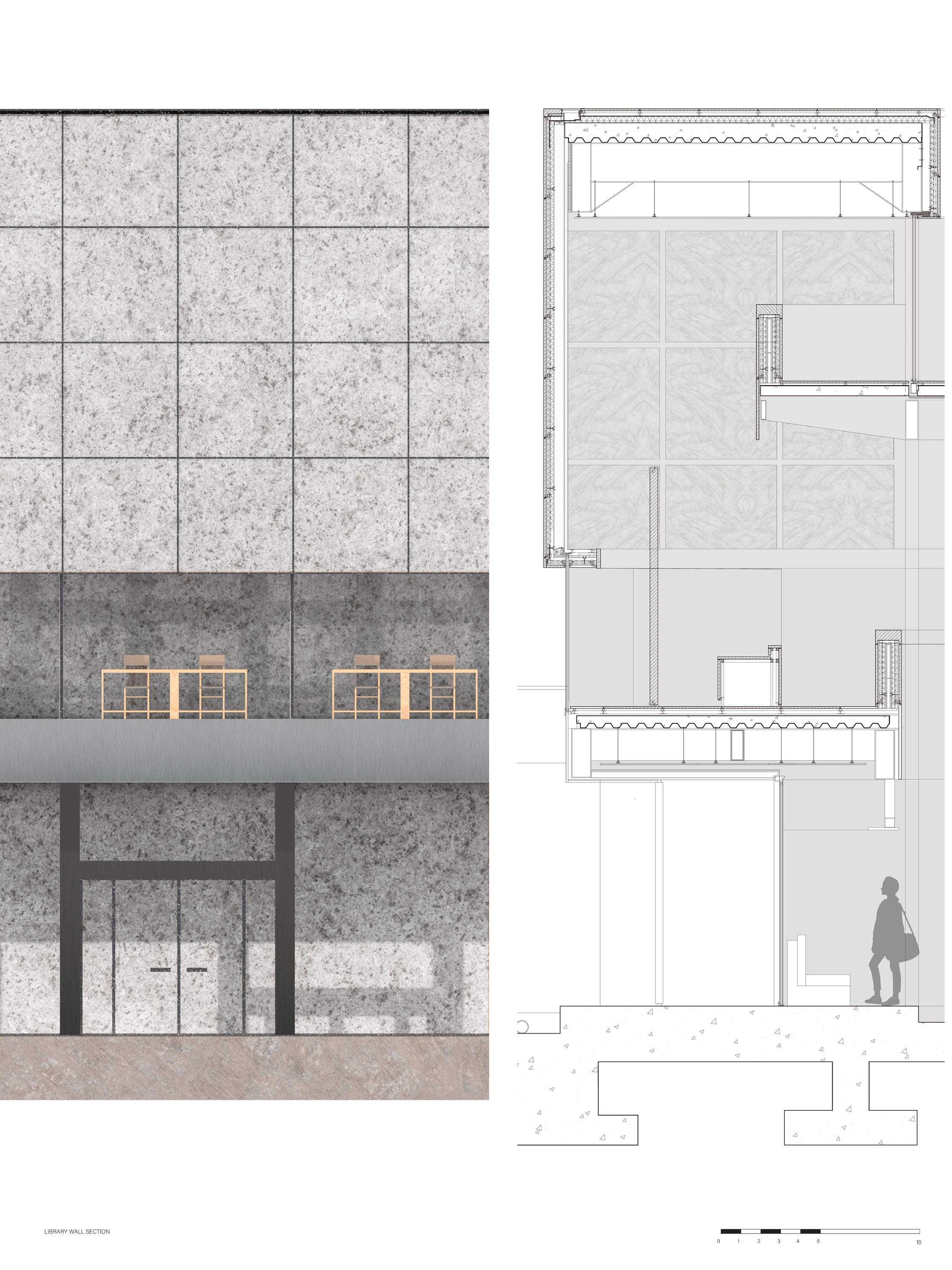 Role: I mainly focus on site strategy and church design, produced typology study, site analysis and plan, all church drawings, and wall sections for church and library.
