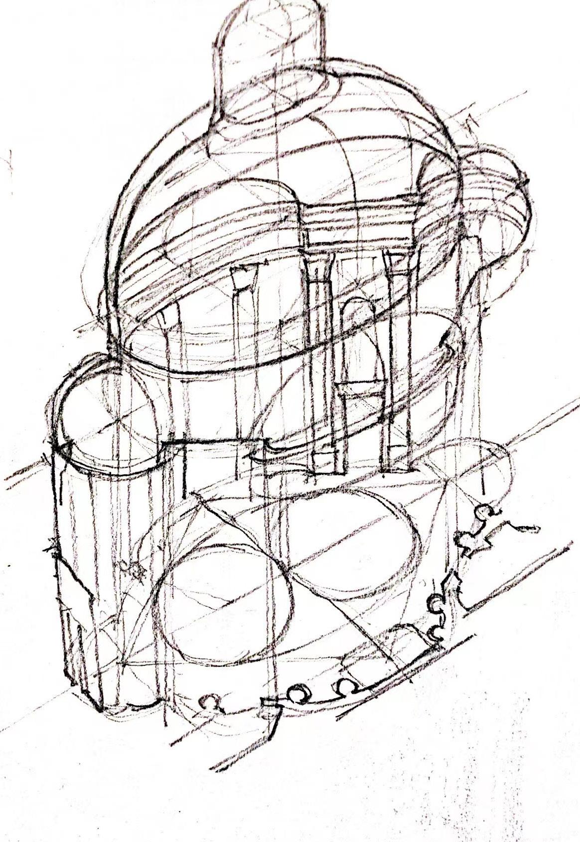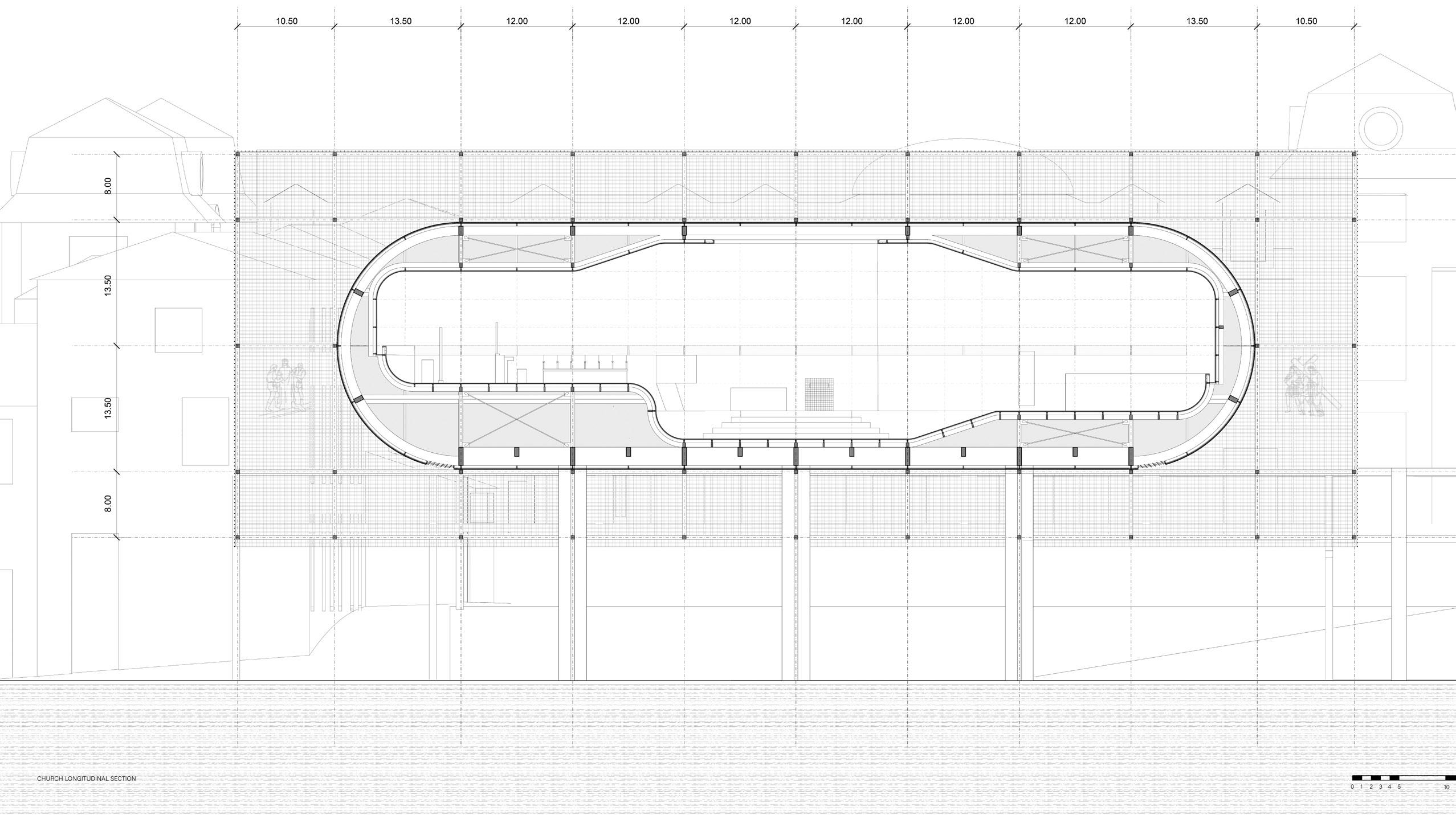 Taking on the concept of Baroque church, this design eschews perfect geometry to forge a mesmerizing and contemplative space. The exterior of the church assumes the form of an elongated circle, sit in between the frontal central court and cloister to the rear.