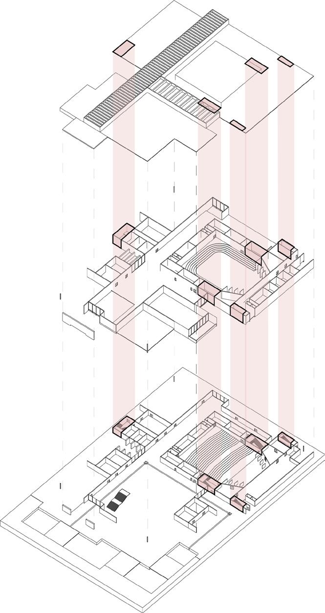 As the building is located in lawrence downtown, the project uses a movable facade to protect the privacy of each residential unit.
