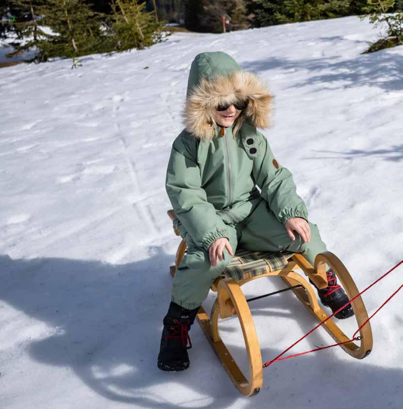Verschiedene Abfahrtspisten aus Naturschnee laden zum Schlitteln ein — uns gefällt die fast 5 Kilometer lange blaue Strecke besonders.
