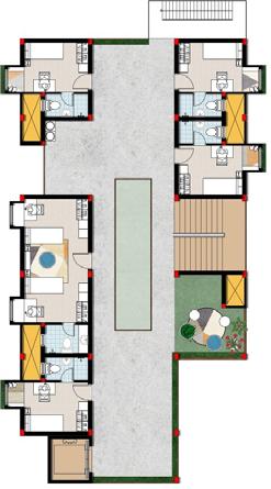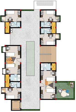 • There are total 10 student clusters on the site , in which 3 cluster has warden room and office on the ground floor and remaining clusters has laundry rooms.