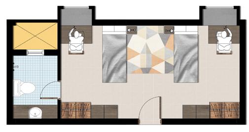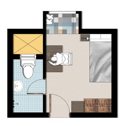 Sleeping space Bathroom Study Common space